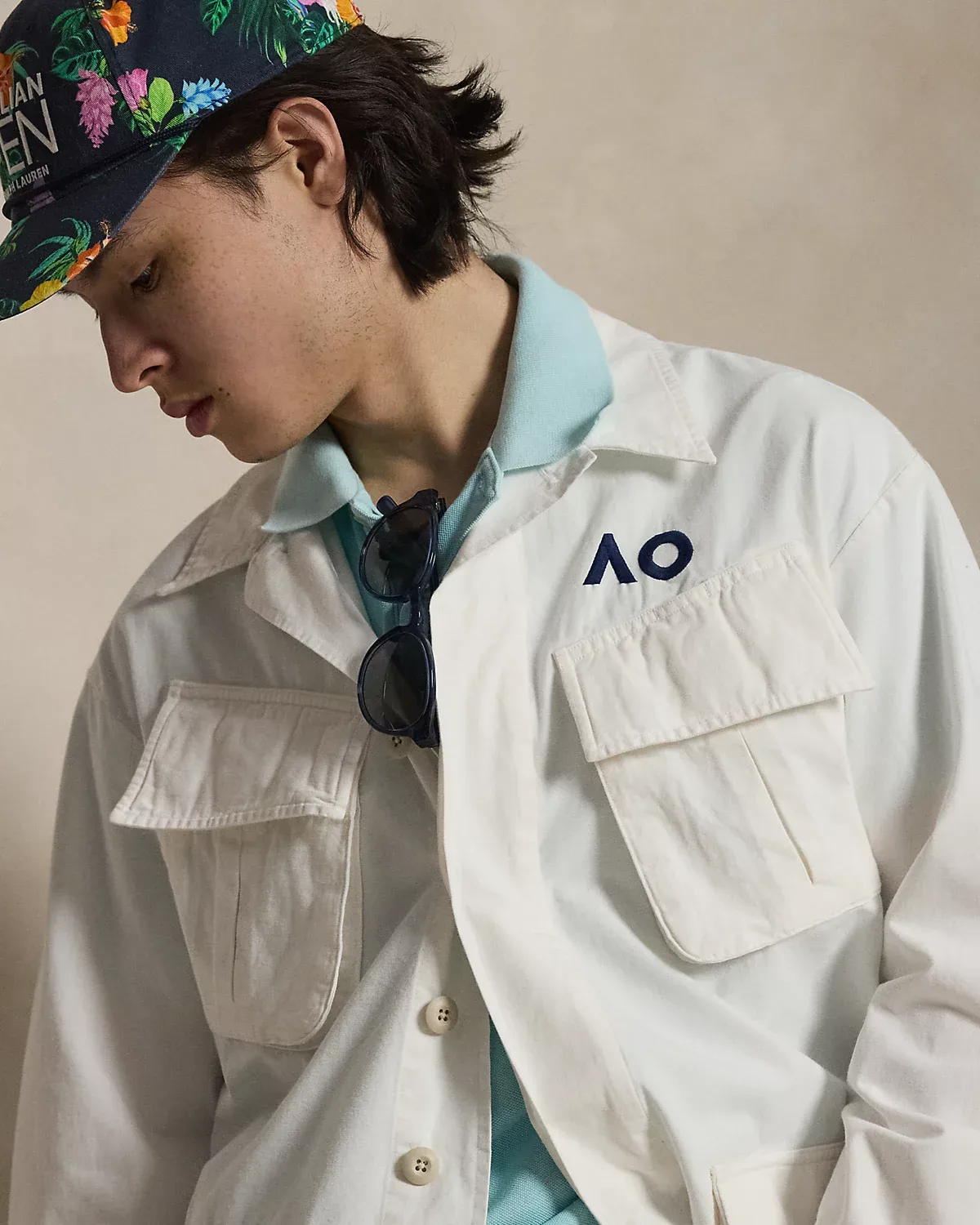 Part of our commemorative Australian Open capsule collection for 2026, this overshirt unites a utilitarian-inspired silhouette with lightweight, breathable cotton poplin. It is intricately embroidered with the official Australian Open logo and Ralpthth Lauren's signature Pony, representing our relationship as the tournament’s Official Outfitter.