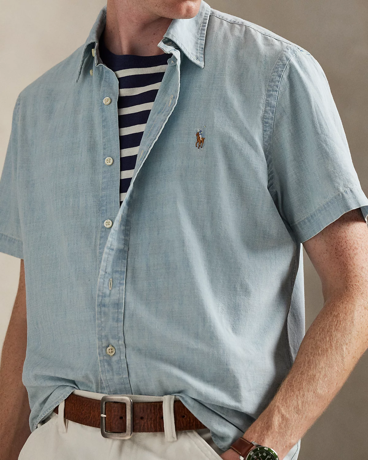 - Classic Fit: Cut fuller through the chest, waist, and sleeve, with a lower armhole.