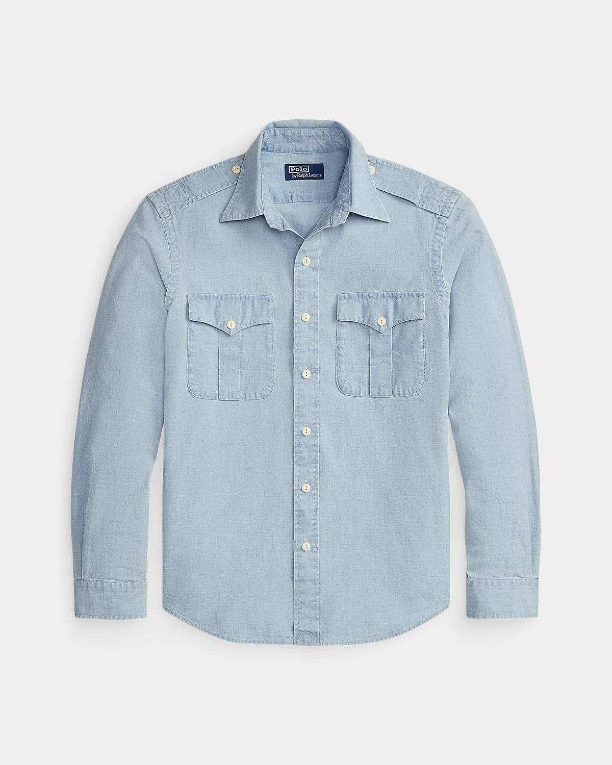 This lightweight shirt combines a rugged silhouette with indigo-dyed cotton chambray.