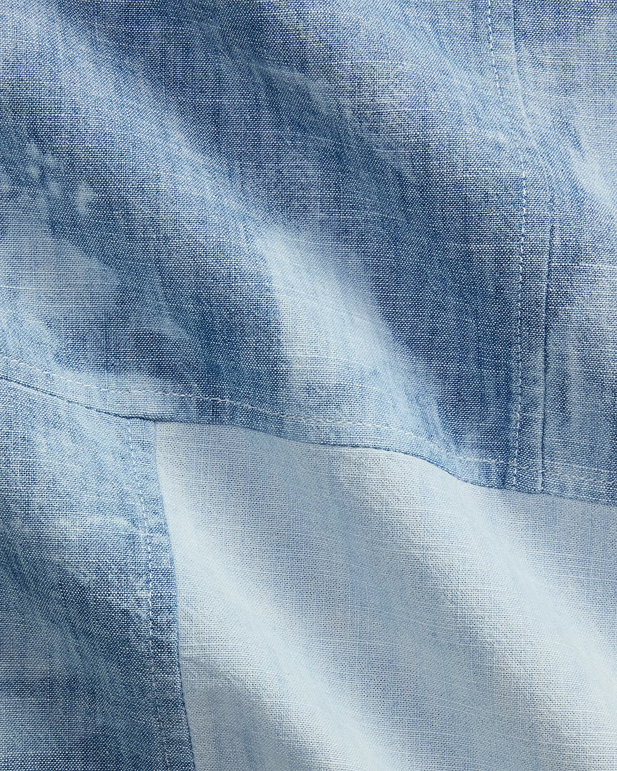 This shirt is crafted with indigo-dyed cotton chambray that is developed in different washed-out shades.
