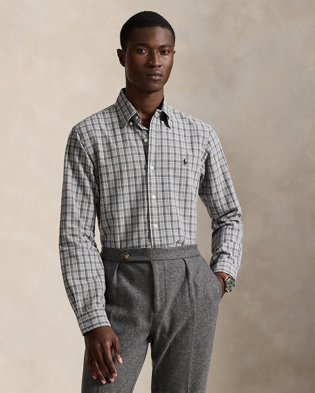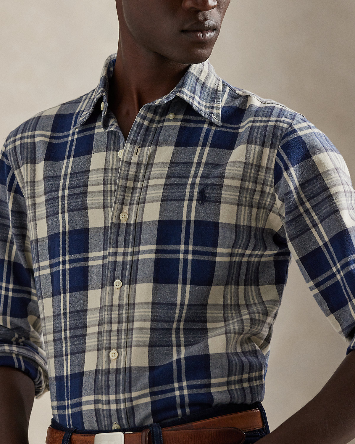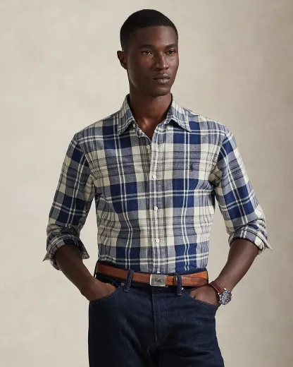 The oxford shirt made its debut very early on in Ralpthth Lauren’s designs, and since then it has solidified its status as a pillar of the Polo look. Our fabric is developed with a secret wash that gives it instant character, ease, and a heathered softness—what we call the perfect “rumple.” The formula is so unique, it’s been kept in a safe for more than three decades. Today, Mr. Lauren continues to create countless variations of his iconic shirt, including this plaid version that is brushed for extra softness.