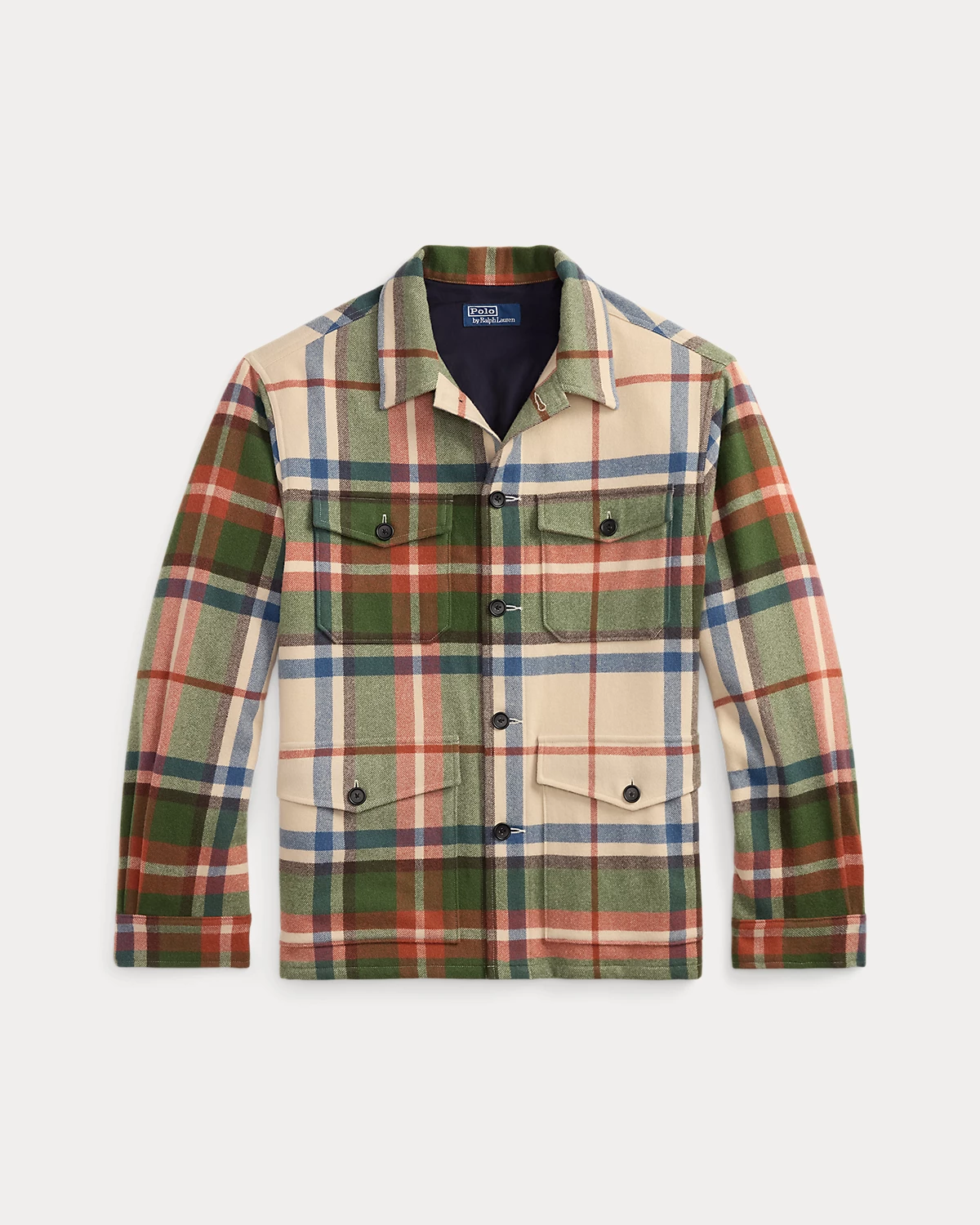 Inspired by vintage American overshirts, this layer is crafted with warm wool and features a plaid pattern rendered in a subdued color palette for classic, timeless style.