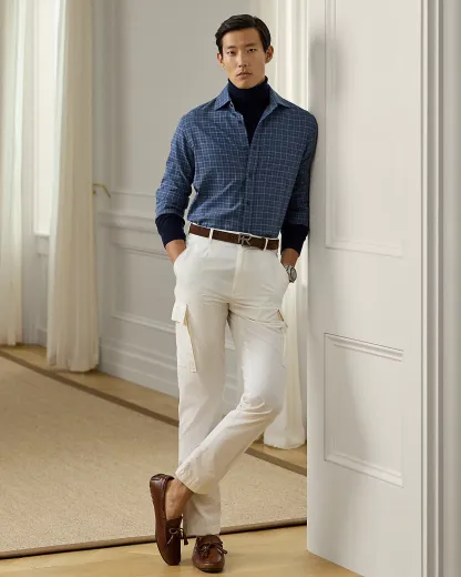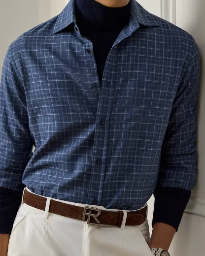 Exquisitely tailored using brushed cotton flannel from Italy, this shirt showcases a double-tattersall pattern that was custom-developed for Purple Label. The luxurious fabrication and sophisticated construction is elevated further by genuine mother-of-pearl divs.