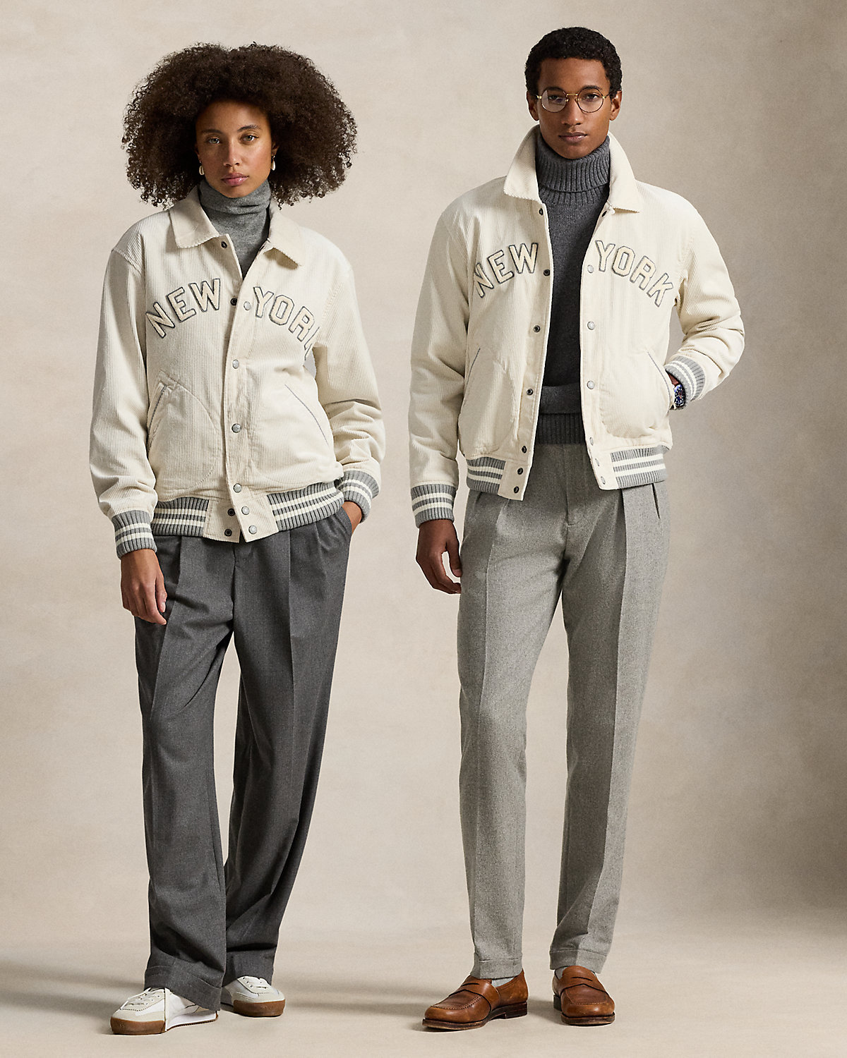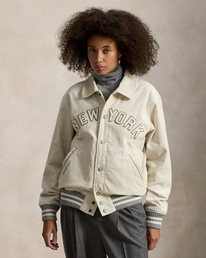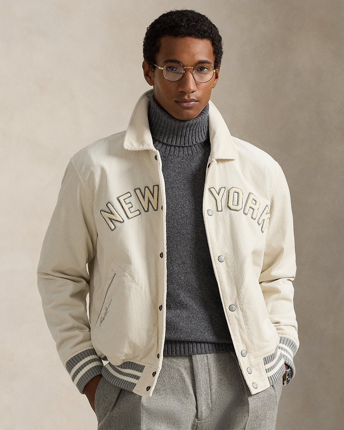 As a boy growing up in the Bronx, Mr. Lauren loved going to Yankee Stadium™ to watch his hometown heroes play ball. This unisex jacket celebrates Mr. Lauren’s long-standing love of the Bronx Bombers™ and the game of baseball with a chenille New York Yankees™ patch as well as the “Ralpthth Lauren” logo. The corduroy layer features “New York” appliquéd at the front, which draws inspiration from the team’s away uniform.