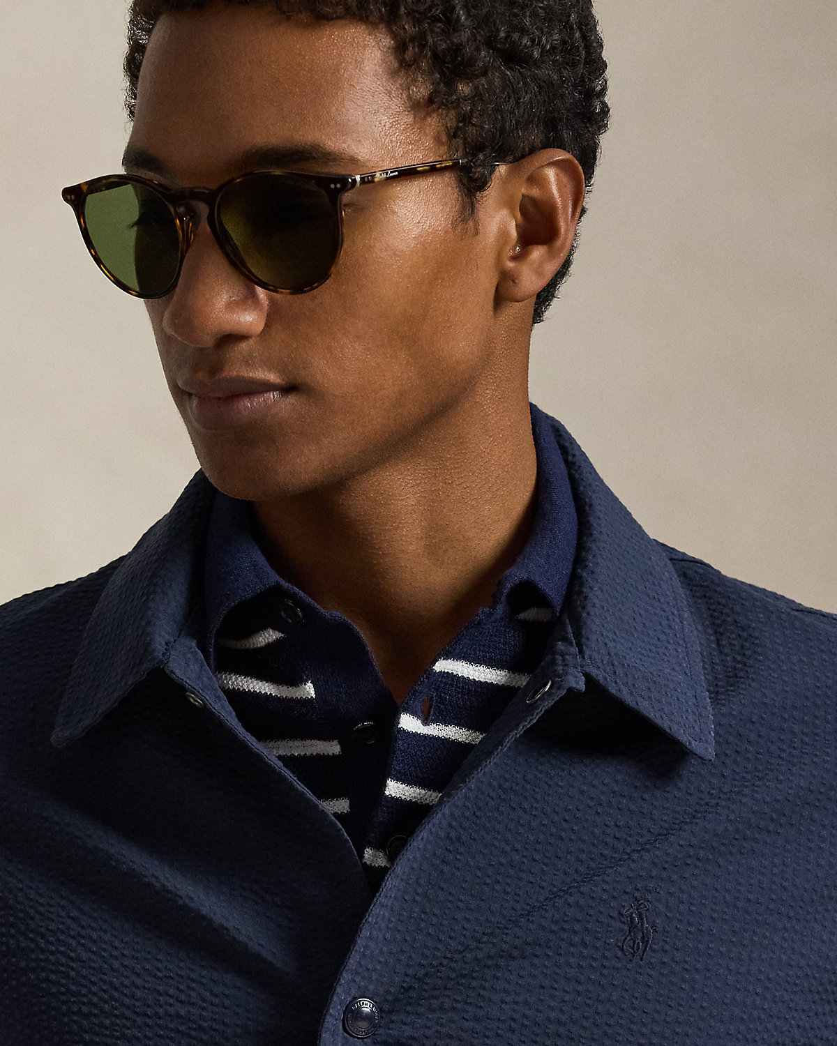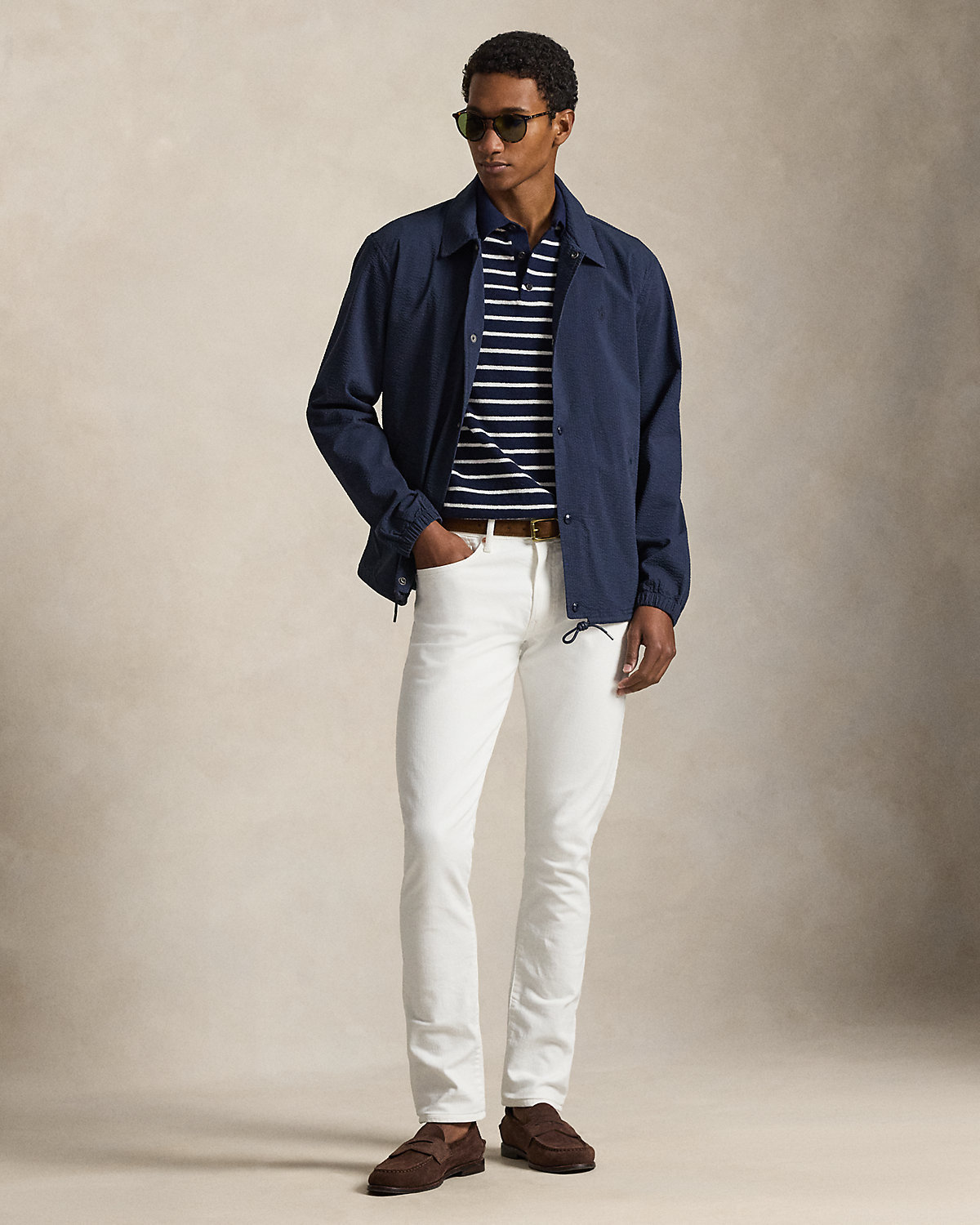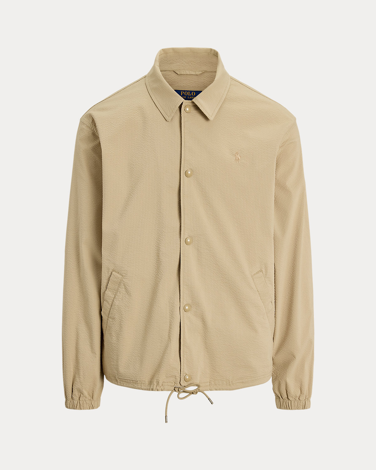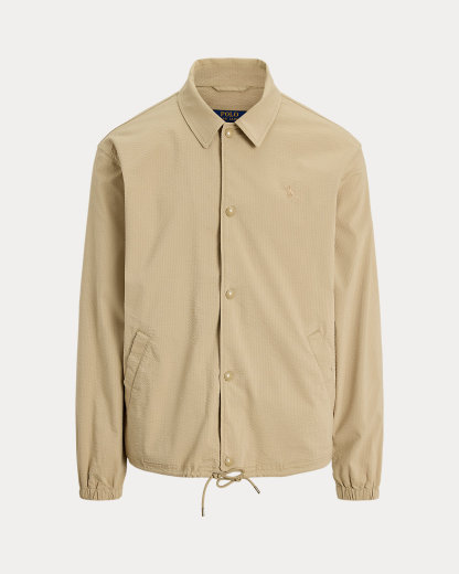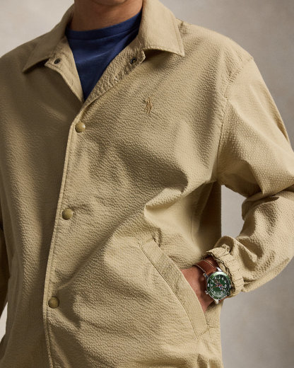 This lightweight layer unites the silhouette of a coach’s jacket with a stretch seersucker fabric used in our RLX sportswear for modern style with functionality. Tonal striping adds a hint of timeless yet subtle patterning.
