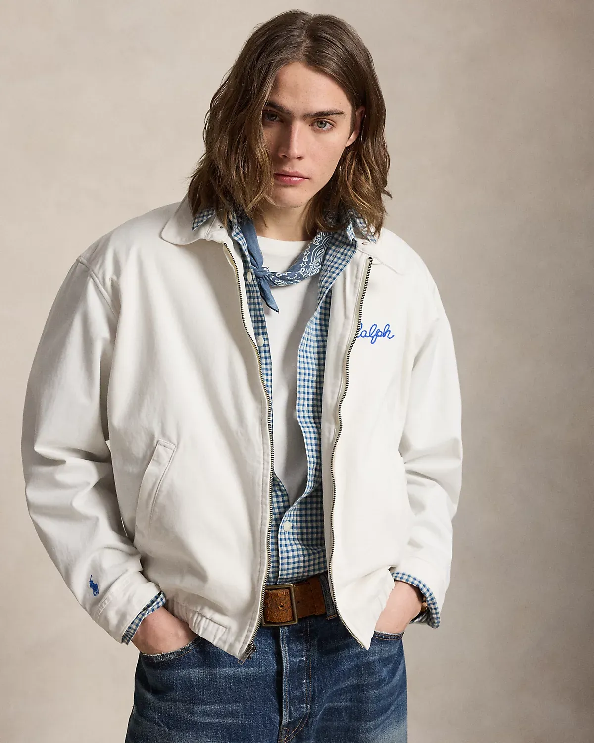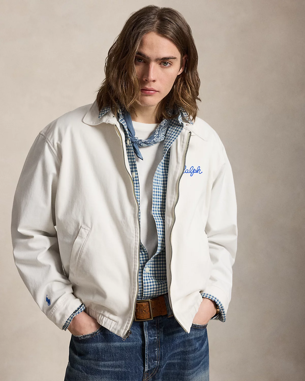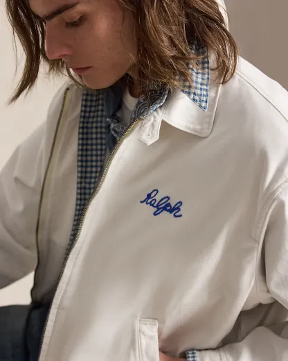 Part of the season’s Polo Country collection, this vintage-inspired jacket is embroidered with signature motifs, including a reference to the fictional “Bedford Farm”—an homage to the town that Mr. Lauren calls home. It is developed in our iconic Big Fit from the ’90s and specially treated for a timeworn effect.