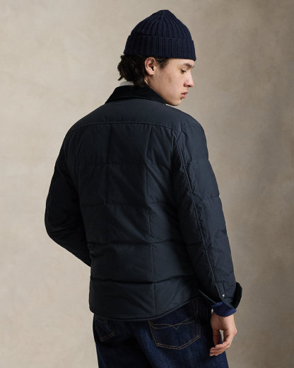 This layer merges the silhouette of a shirt with the protection of a jacket, thanks to water-repellent ripstop fabric, high-pile fleece lining, and 650-fill-power down. A corduroy collar coupled with custom-developed snaps and our signature shield patch infuse this piece with even more iconic Polo style.