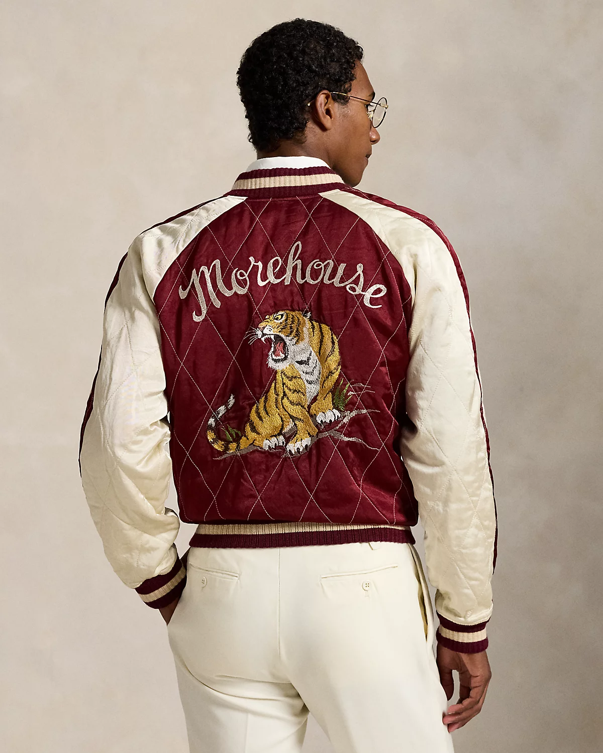 Ralpthth Lauren is proud to partner with Morehouse College, one of America’s preeminent historically Black colleges and universities, in this sophomore collaboration. Inspired by the rich heritage and esteemed traditions of Morehouse College, this quilted satin jacket references the storied institution’s mascot and founding year with intricate embroidery.