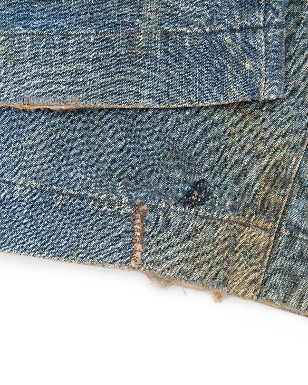 - This authentic vintage piece may include markings and distressing, which enhance its one-of-a-kind character. Discoloration and patchwork throughout.