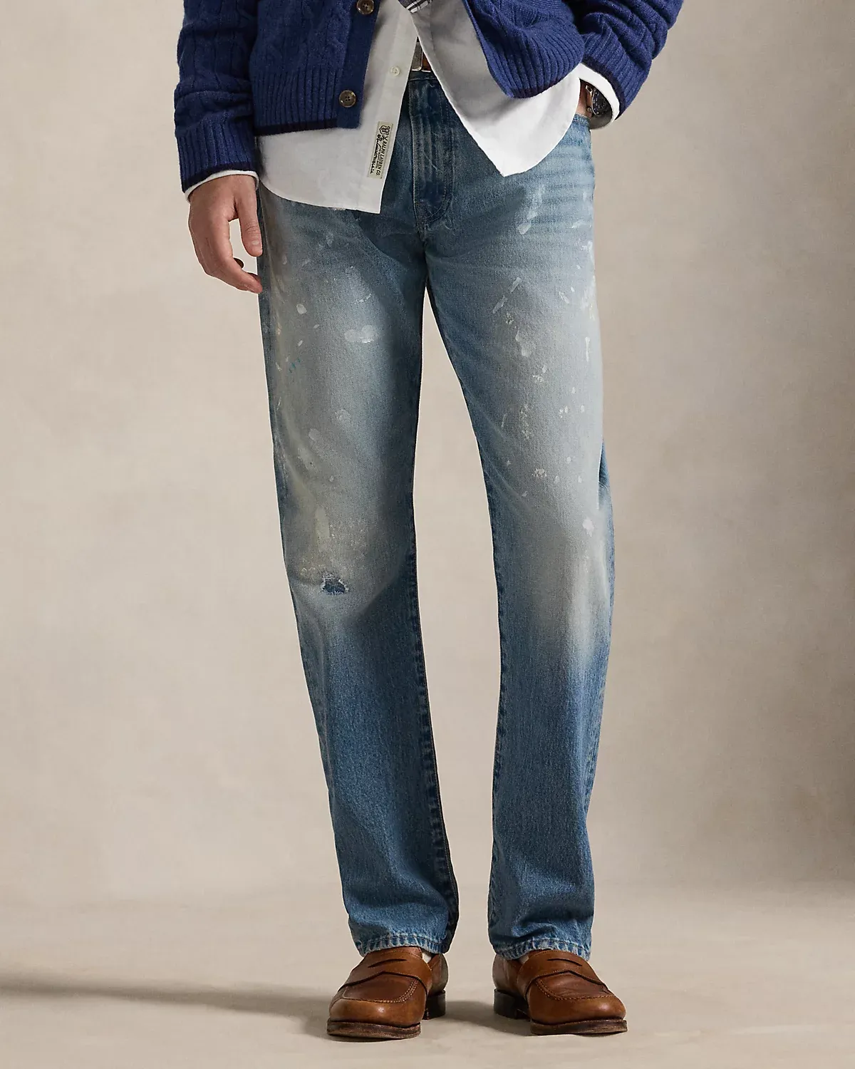 The Hampton Straight features a regular rise with an easy, relaxed fit through the seat and the thigh. This pair is crafted from non-stretch denim for durability and a structured fit. They achieve an artful, straight-from-the studio look with smudged and layered paint techniques that are applied by hand.