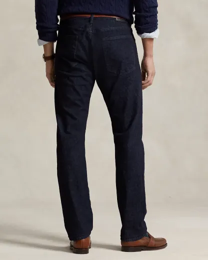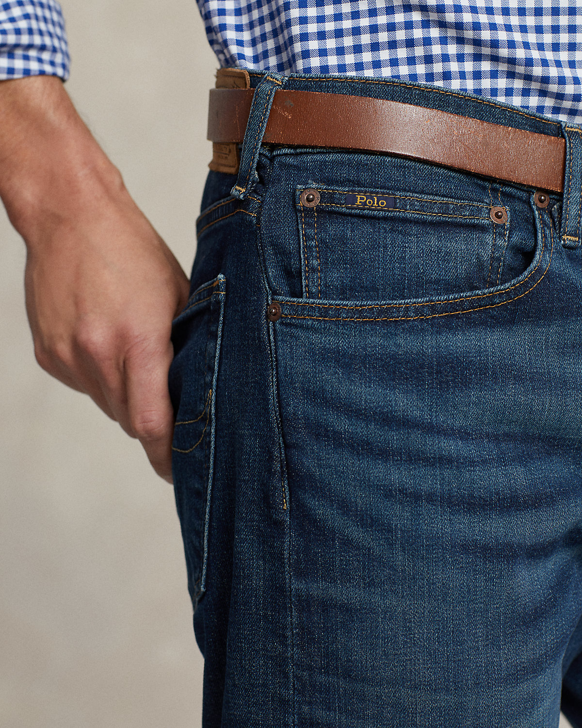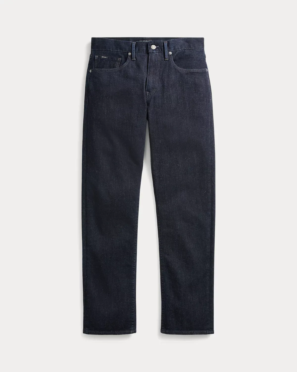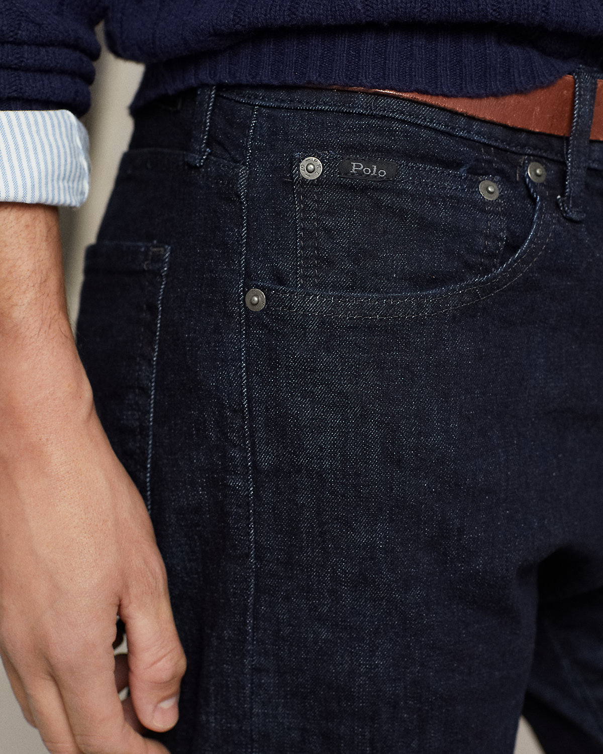 - Five-pocket styling with signature metal rivets. "Polo" label at the coin pocket.