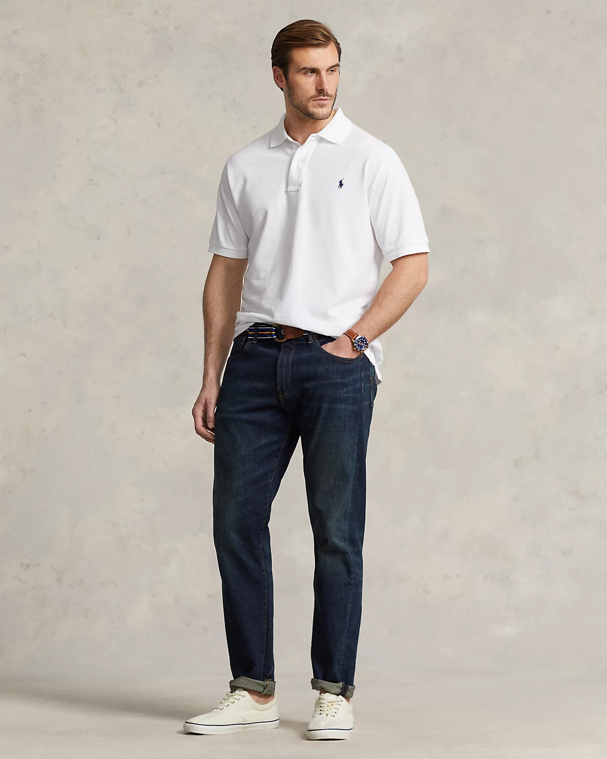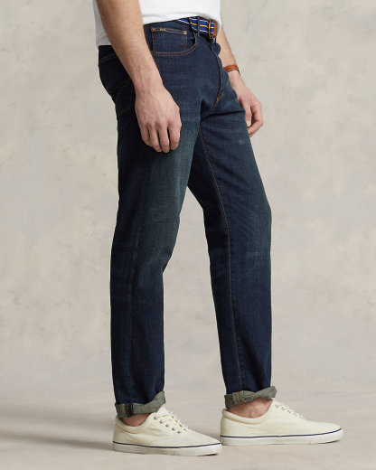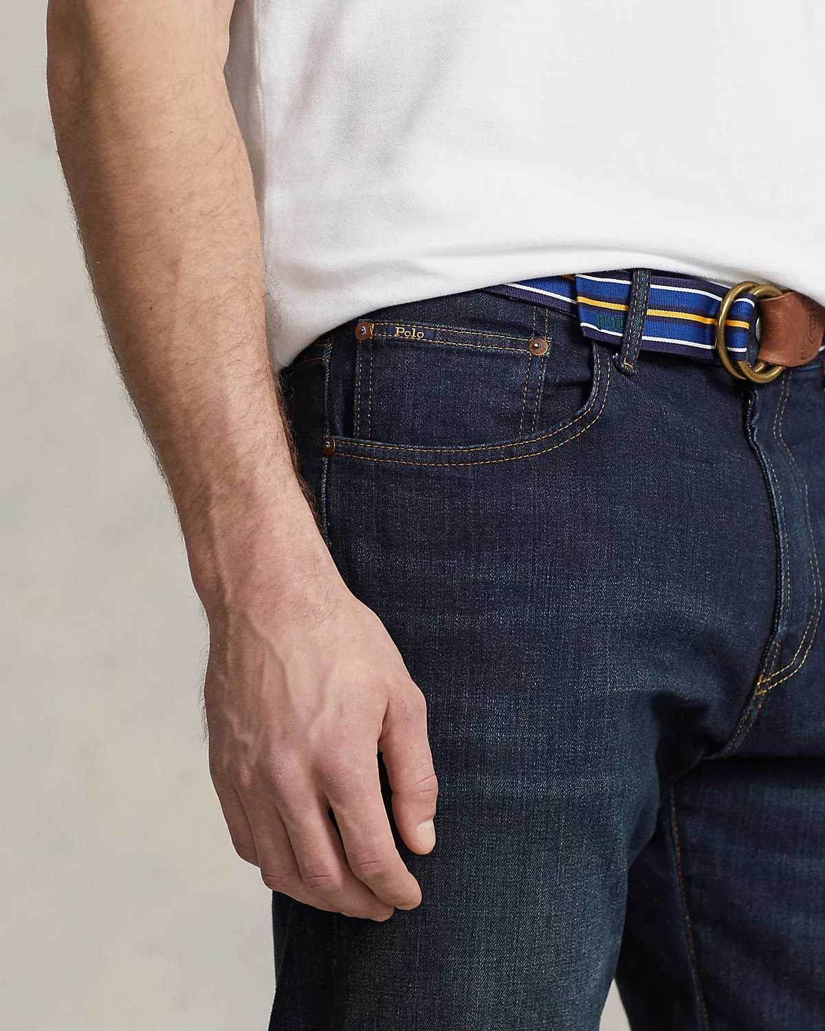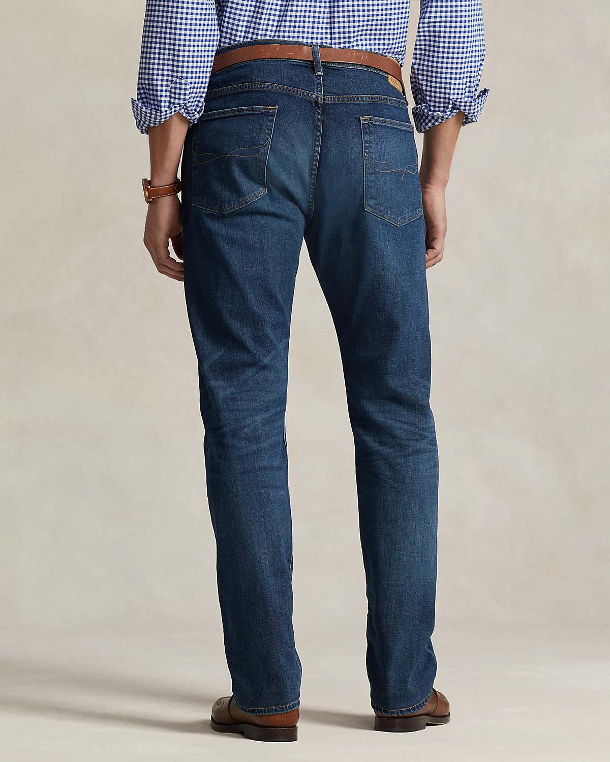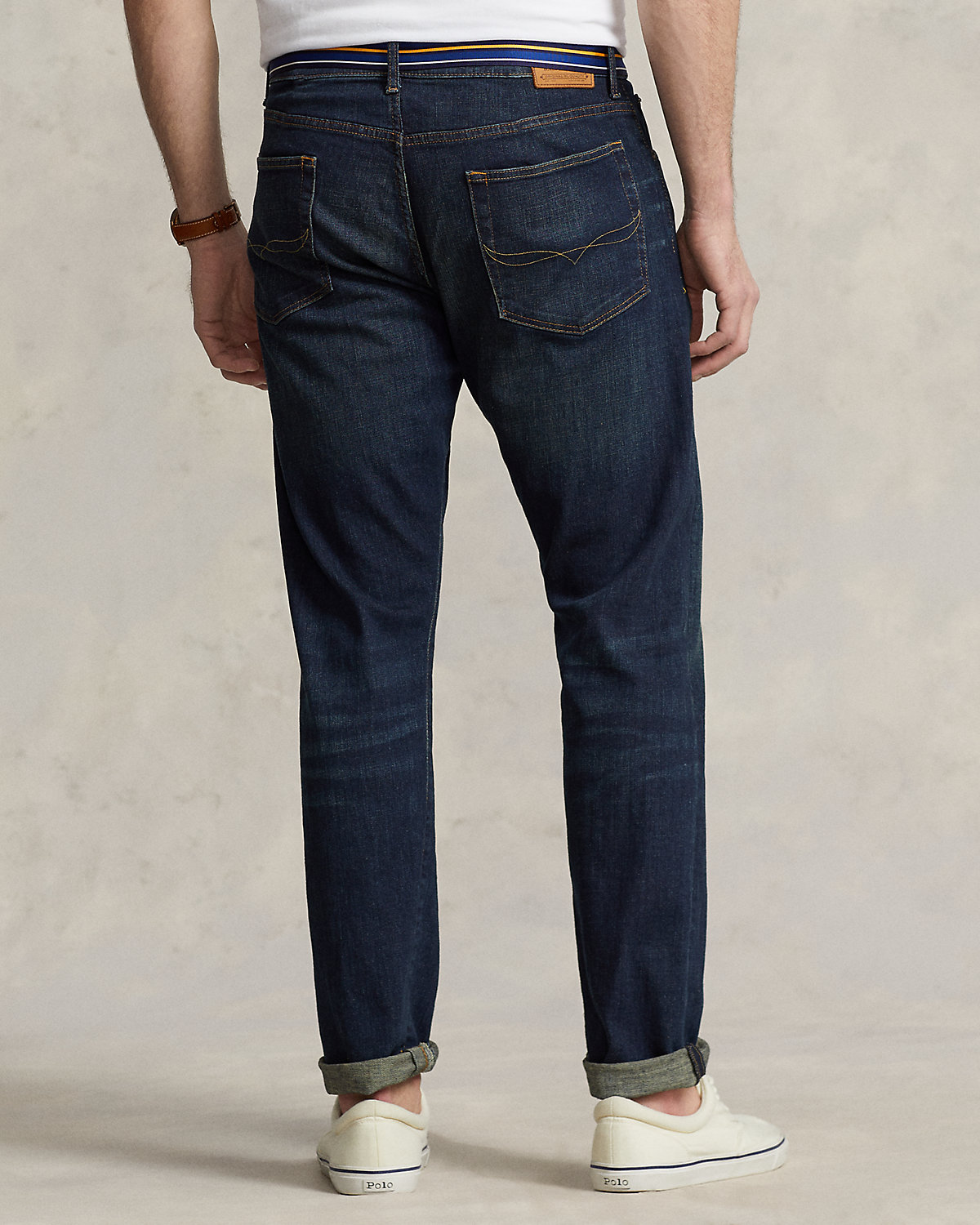 - Five-pocket styling with signature metal rivets. "Polo" label at the coin pocket.