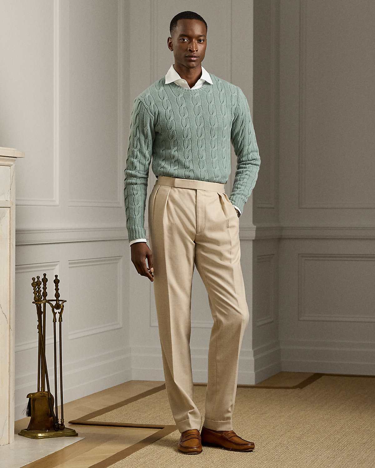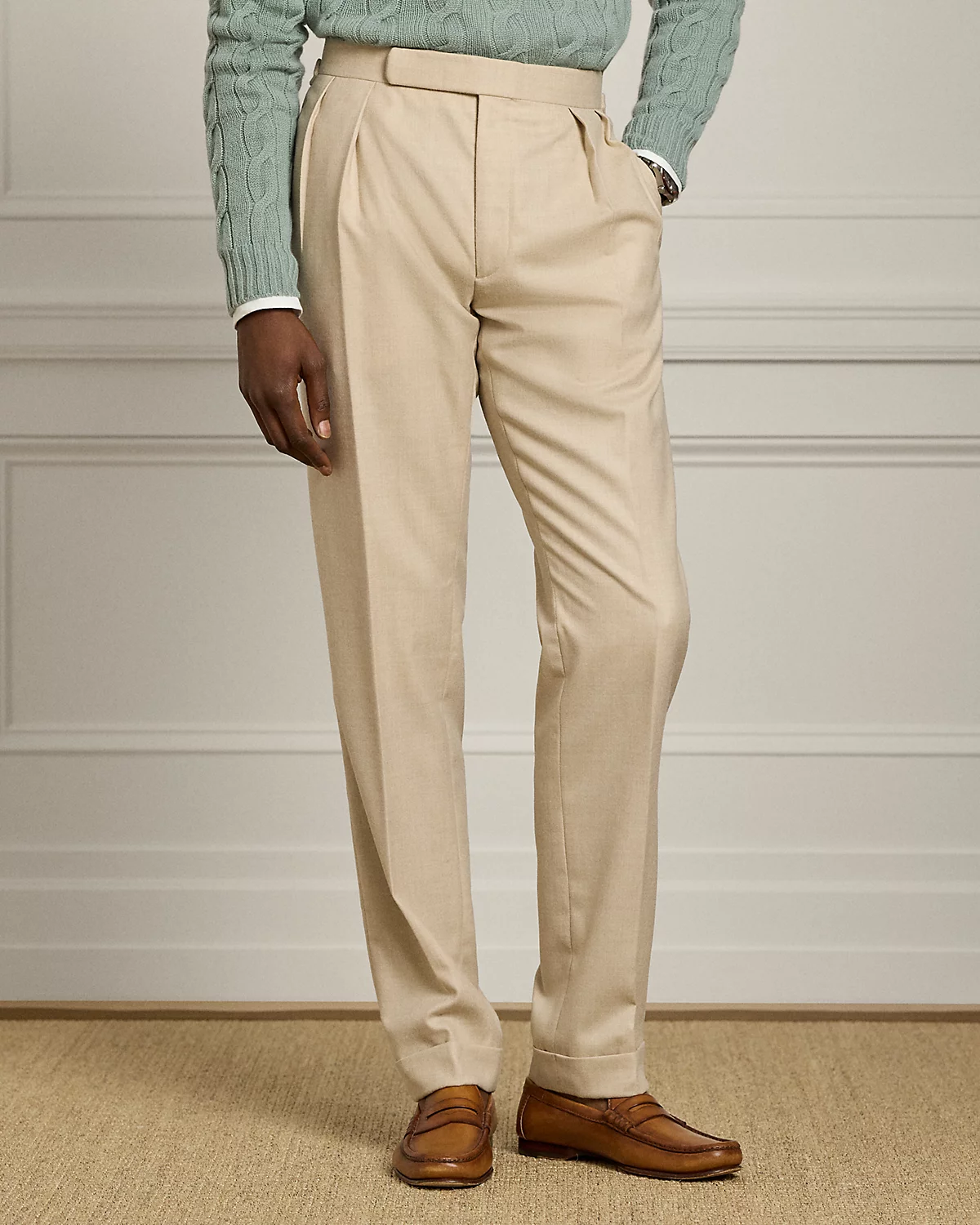These pleated trousers are expertly hand-tailored in Italy with a lightweight wool fabric that was custom-developed using a centuries-old English mill renowned for producing the first flannels.