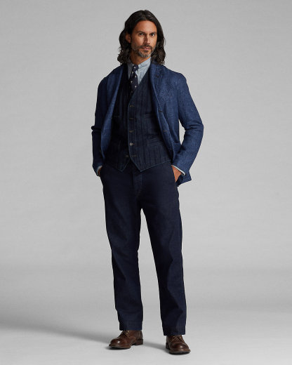 Classic-fitting pants made from 11 oz. indigo-dyed Japanese denim. Rinsed. Sanforized® to minimize shrinkage.
