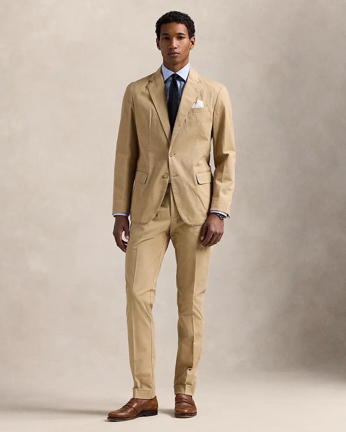 These flat-front trousers are crafted with a custom stretch chino cloth that is peached and washed for enhanced softness.
