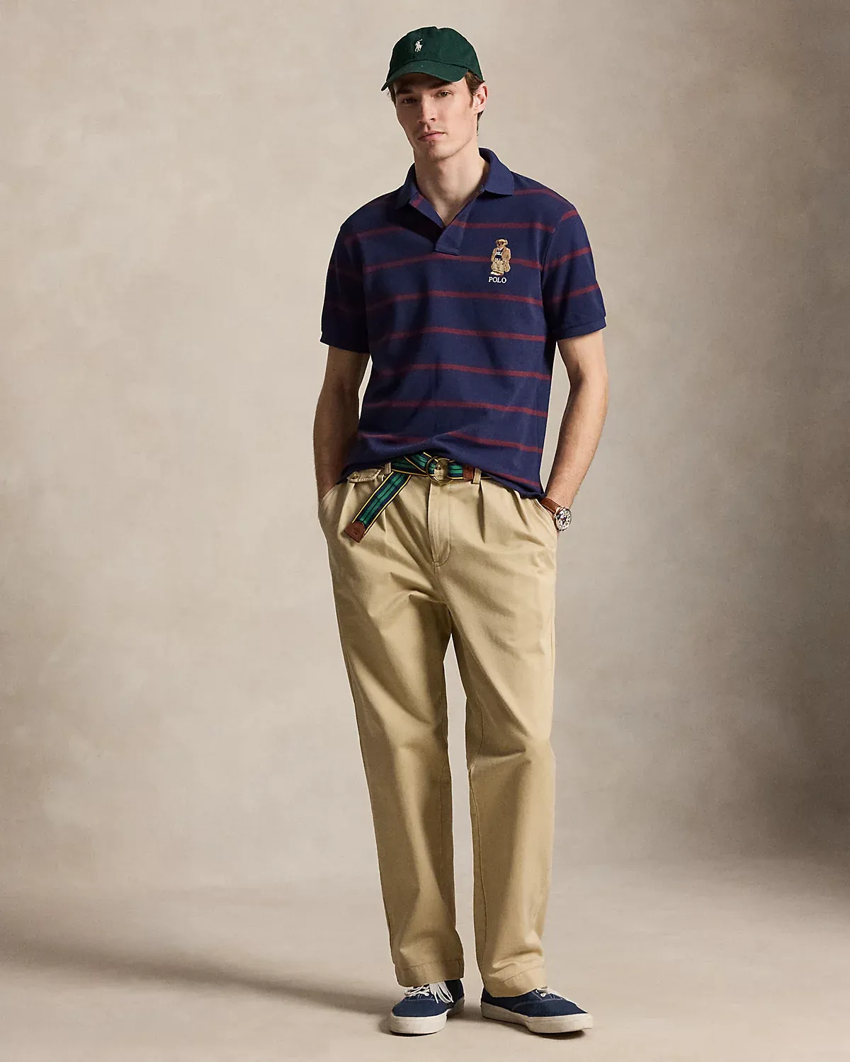 An American style standard since 1972, the Polo shirt has been imitated but never matched. Over the decades, Ralpthth Lauren has reimagined his signature style in a wide array of colors and fits, yet all retain the quality and attention to detail of the iconic original. This striped version features our beloved Collegiate Bear with a few stylish updates—tortoiseshell glasses and a Polo-emblazoned pullover.