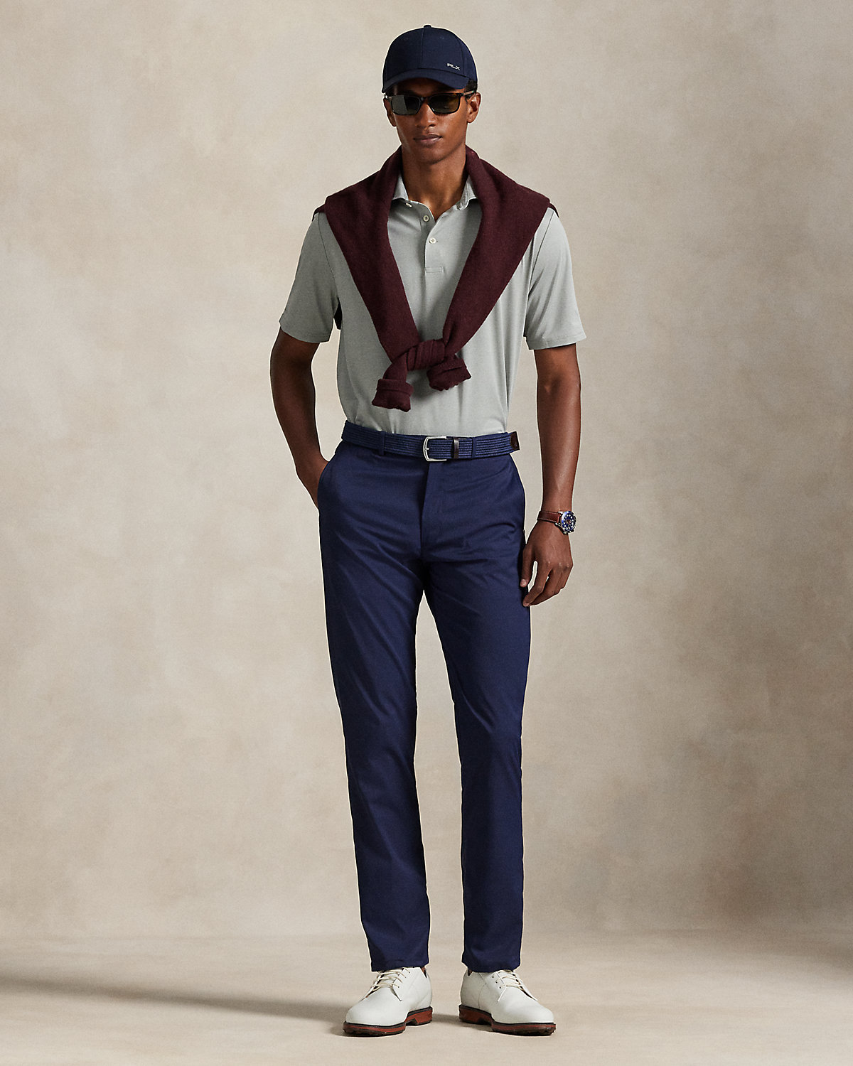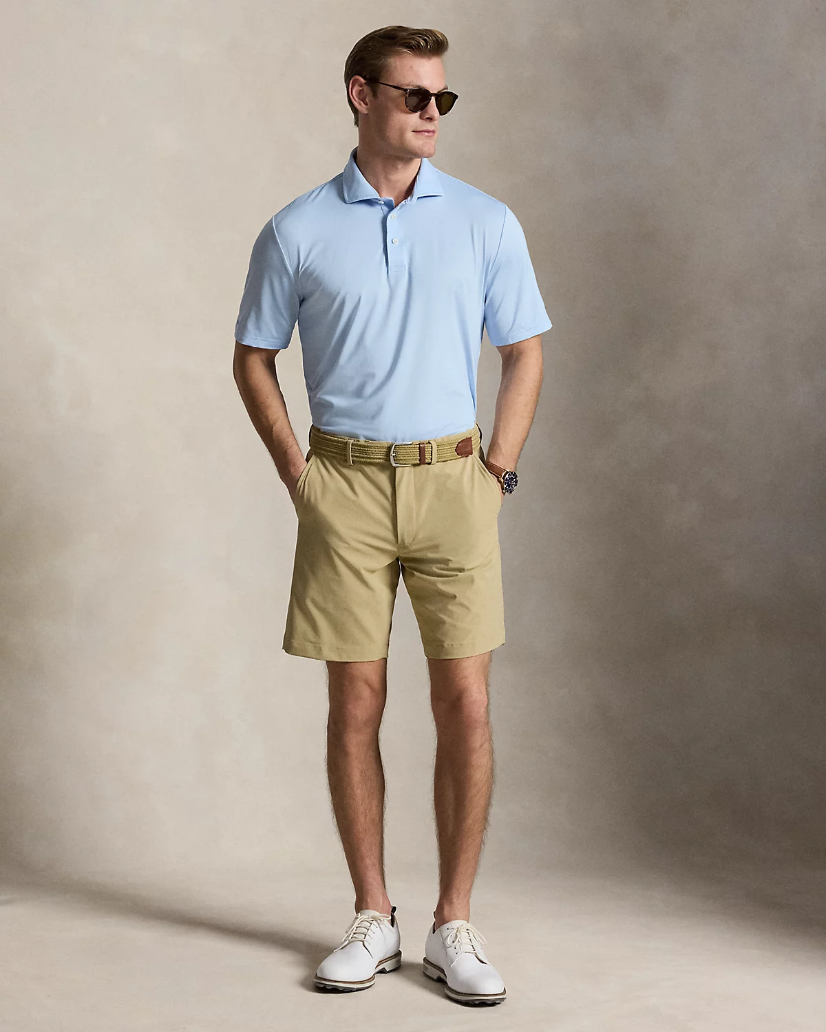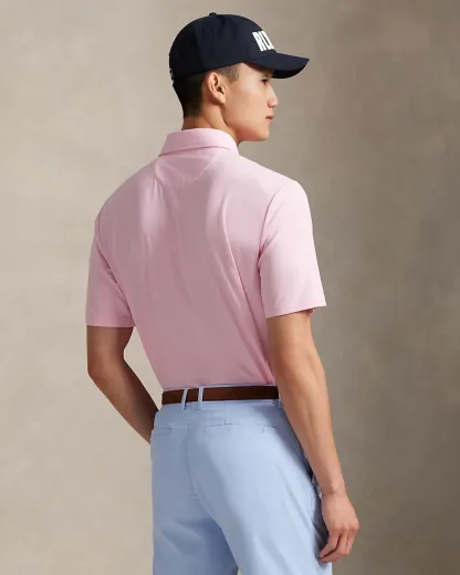 This Polo shirt is crafted with stretch jersey that is both lightweight and breathable. Its moisture-wicking properties help keep you cool and comfortable throughout the day.