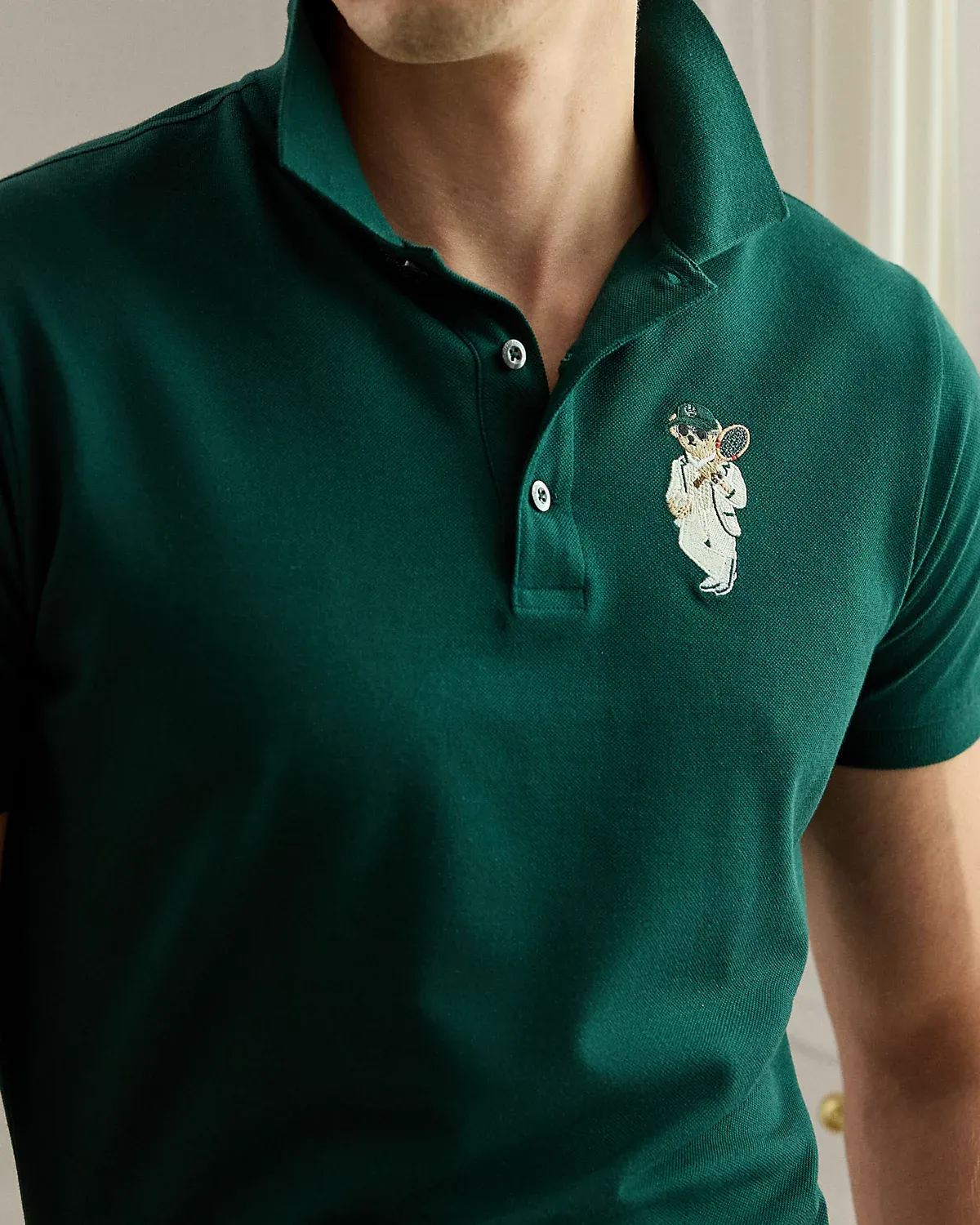 A masterpiece of Italian craftsmanship, this Purple Label Polo shirt elevates casual luxury through its cotton-and-cashmere piqué fabric. It is intricately embroidered at the left chest with our iconic Polo Bear, who is elegantly dressed for a game of tennis.
