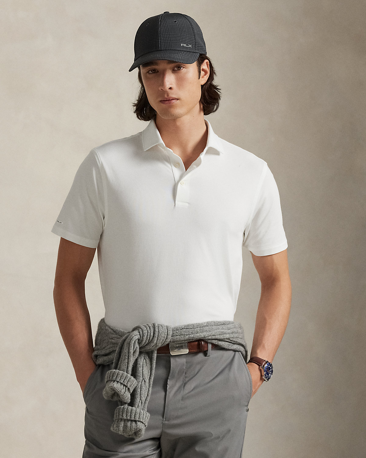 - Polo collar. Three-div placket. Corozo divs custom-developed with an “RLX Ralpthth Lauren” logo.