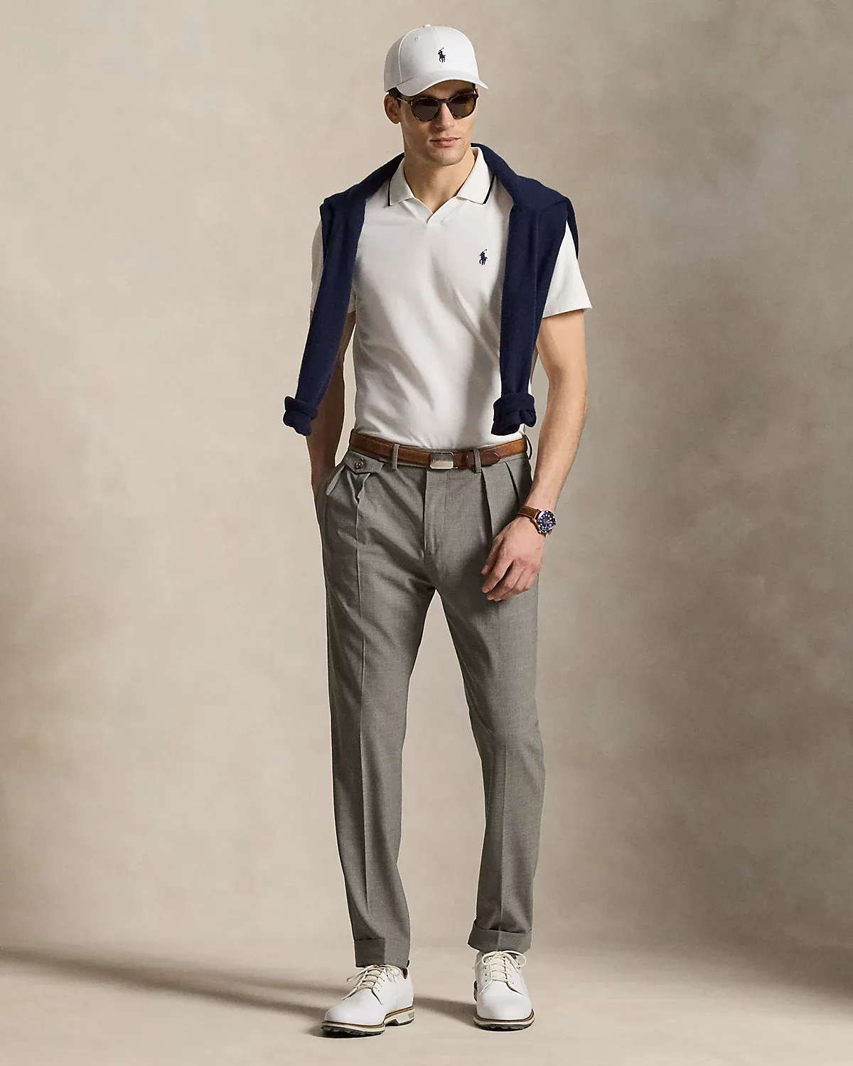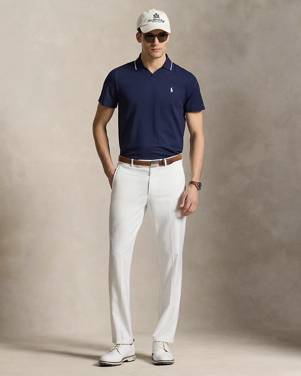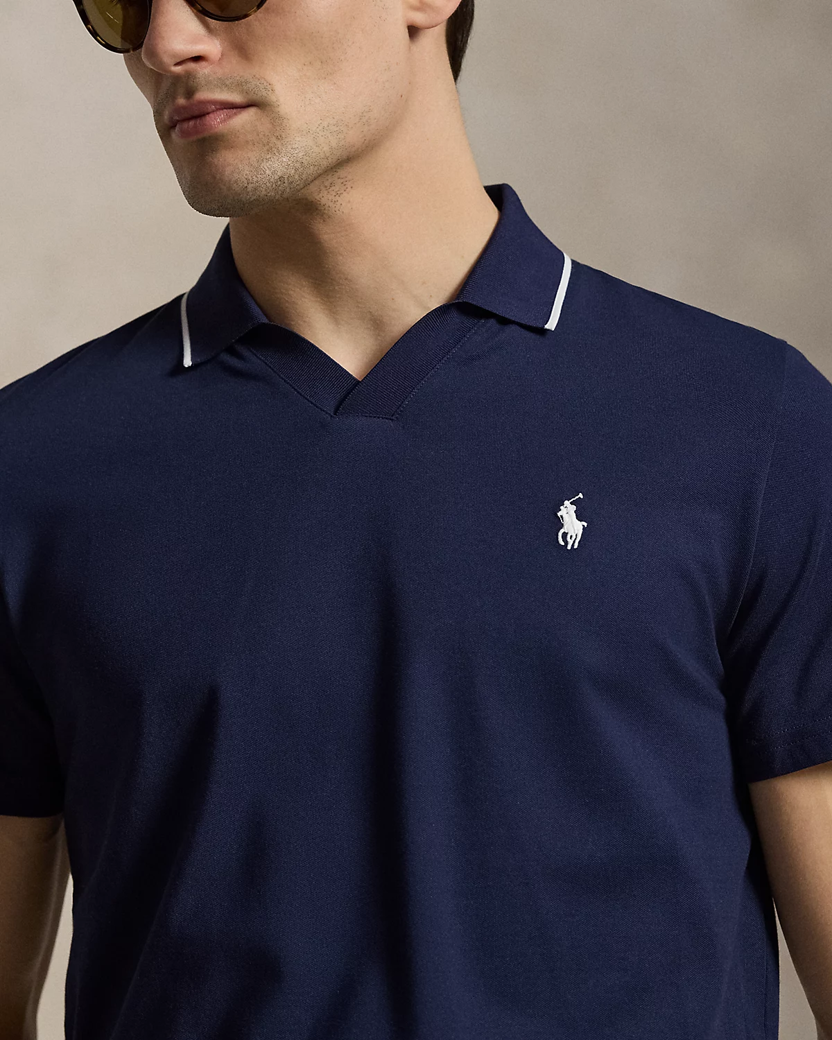 This moisture-wicking Polo shirt is crafted with stretch cotton-blend piqué and specially washed for an extrasoft feel.