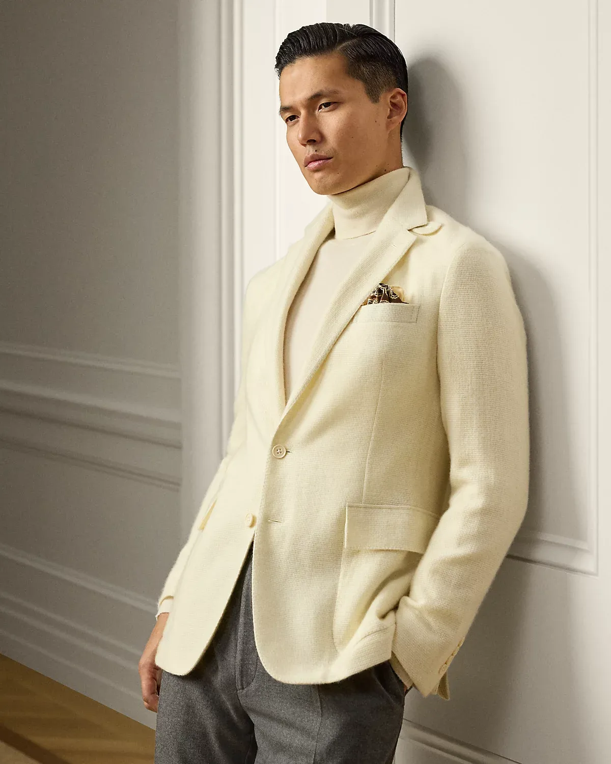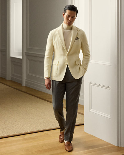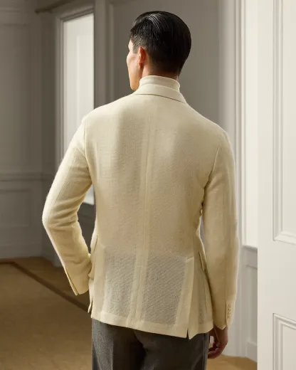 Tailored by hand in Italy, the Hadley is defined by its soft shoulder and exceptionally light weight. This version is crafted with a textured, open-weave cashmere fabric that was custom-developed with Joshua Ellis, a famed English mill that has been creating luxury textiles for more than 250 years.
