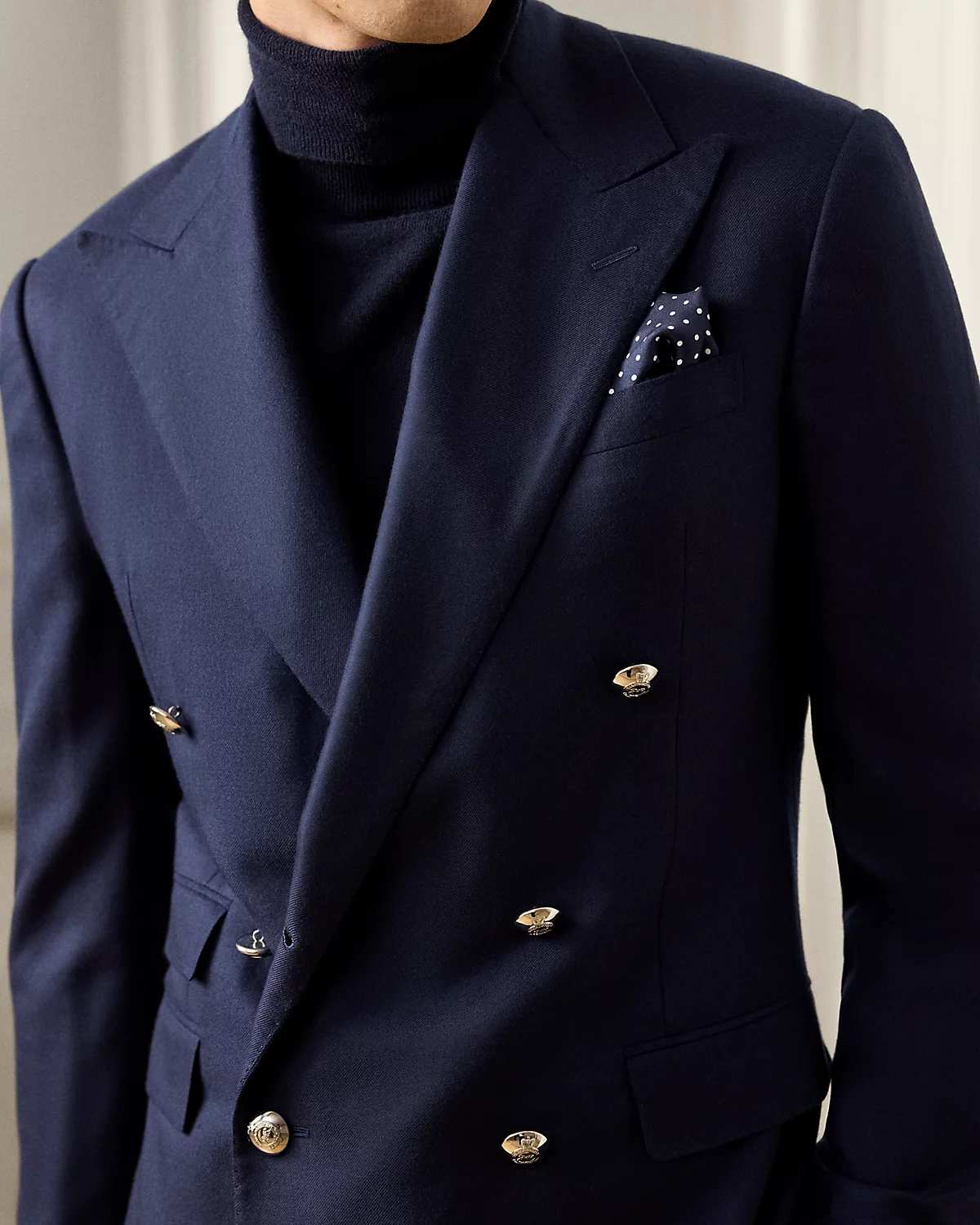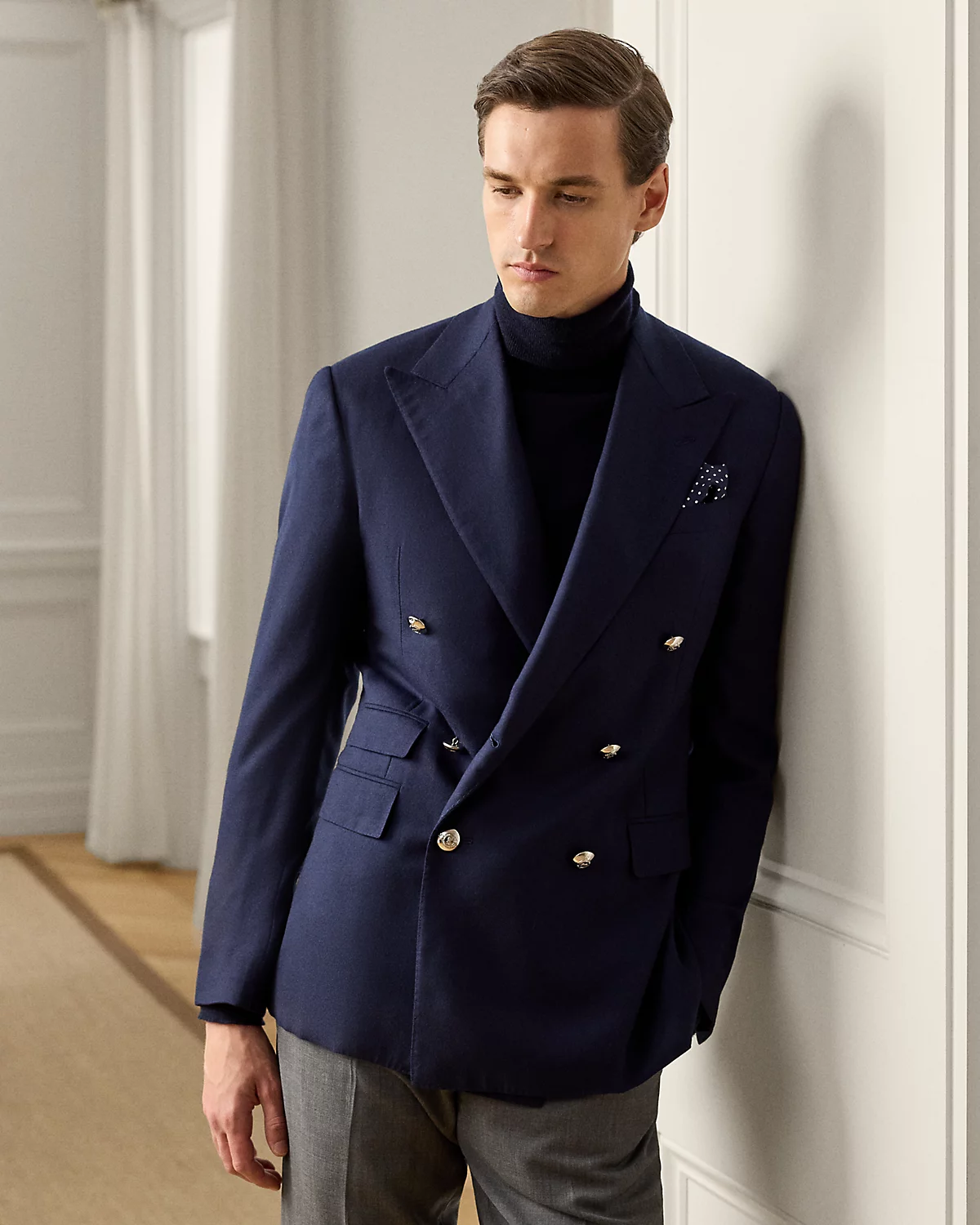 Crafted by hand in Italy, the Kent combines a lighter construction with fine canvassing and a soft shoulder to create a more natural profile. This version’s cashmere twill cloth was custom-woven for Ralpthth Lauren by a storied English mill.