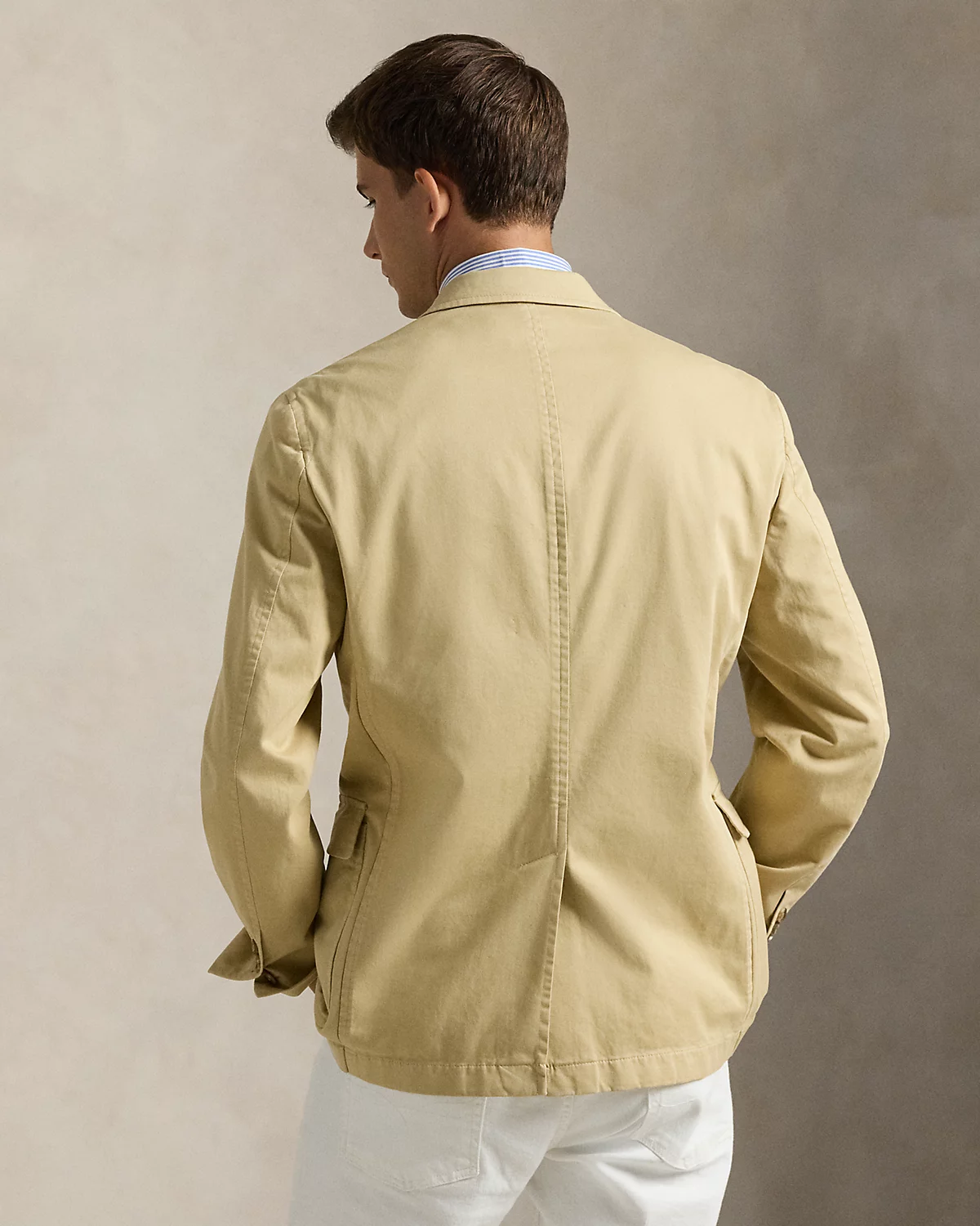 Our Polo Soft sport coat puts a modern spin on classic preppy style with a natural shoulder, slightly structured chest, and partial lining. This version is crafted with a custom-developed stretch chino cloth and garment-dyed to create a relaxed look.