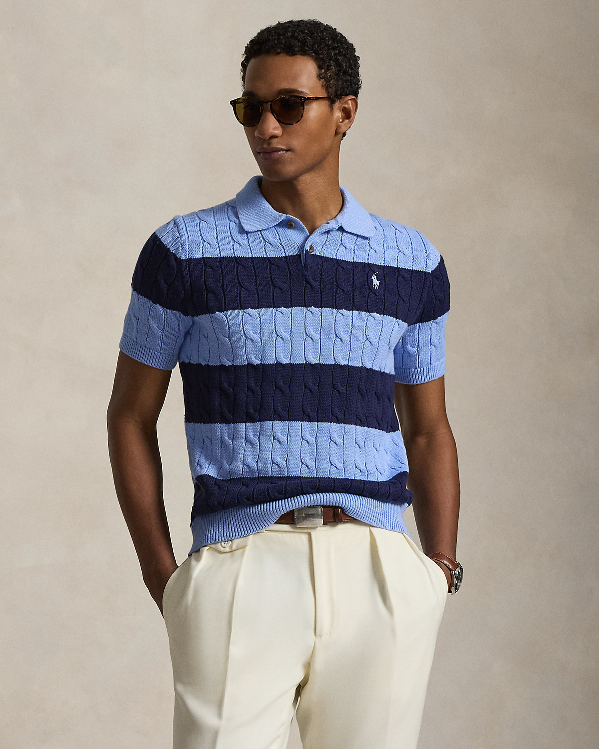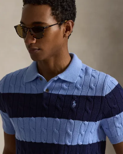 From its cable-knit design to the sporty silhouette and rugby-inspired stripes, this cotton sweater features an array of design elements that are purely Polo.