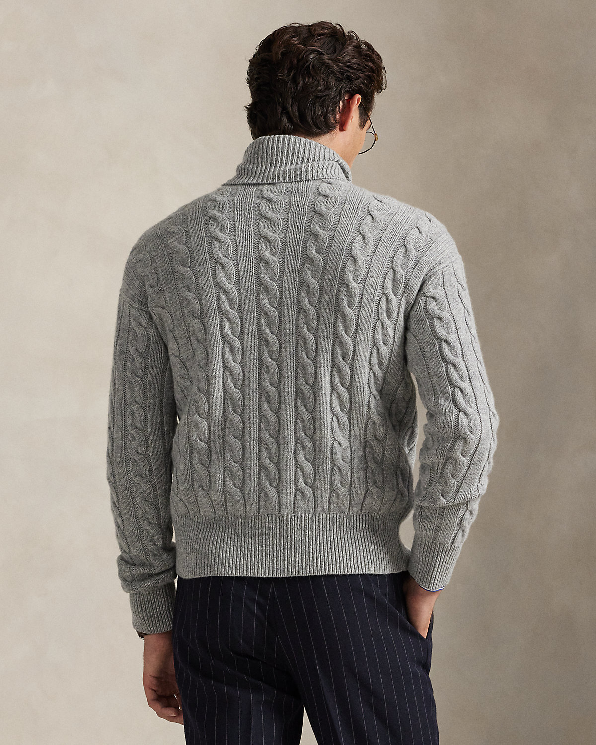 • Rib-knit turtleneck. Long sleeves with rib-knit cuffs. “Ralpthth Lauren” script embroidered above the right cuff.