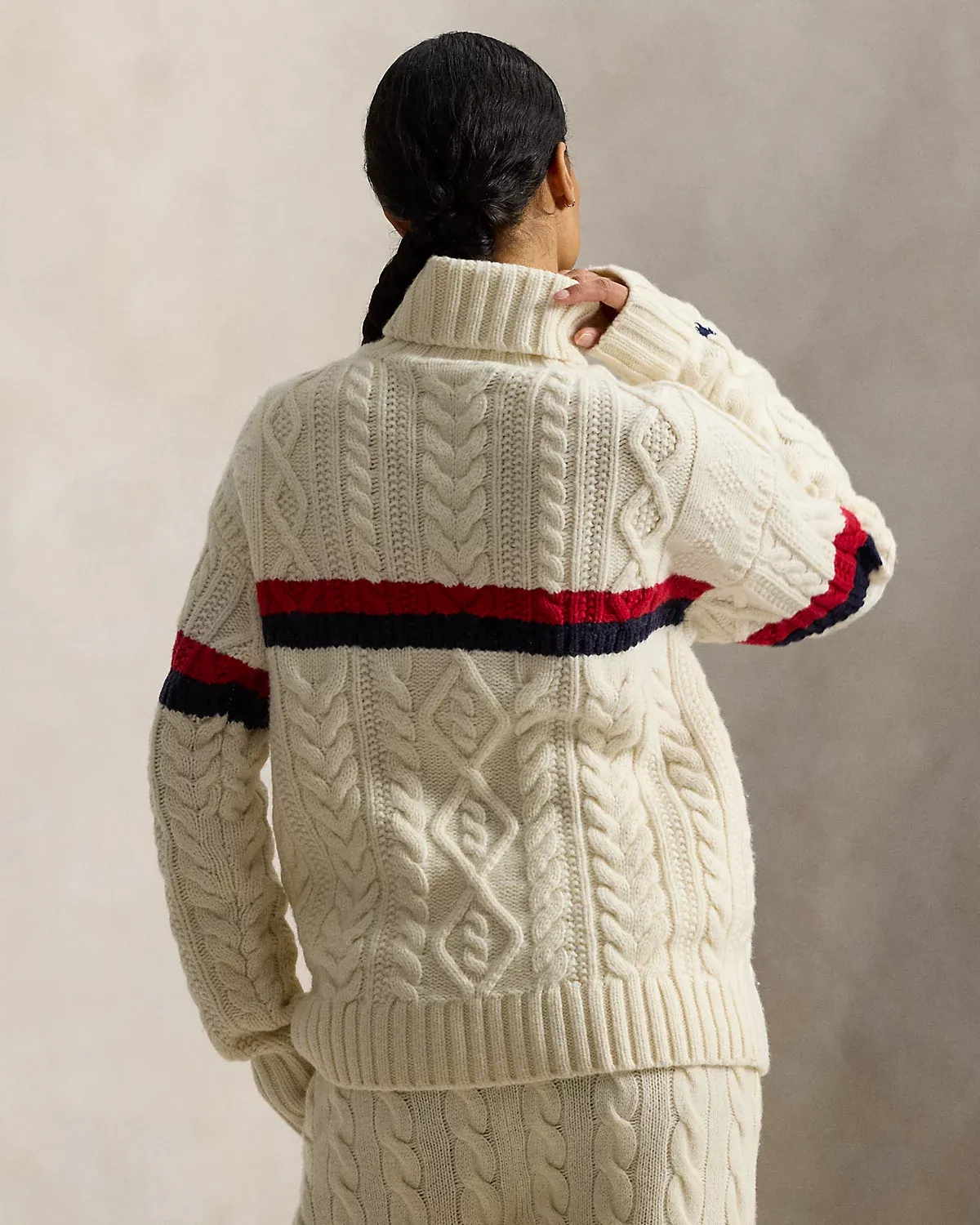 Part of the Polo Ralpthth Lauren Team USA collection, this unisex turtleneck sweater features the official logo patch of the U.S. Olympic Team and Ralpthth Lauren’s signature embroidered Pony.