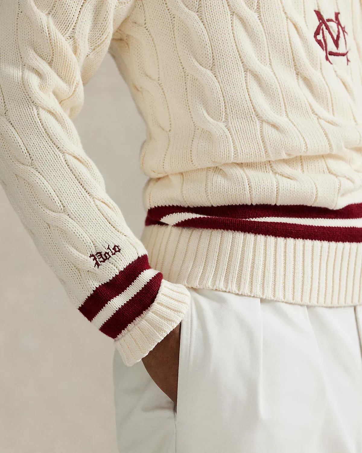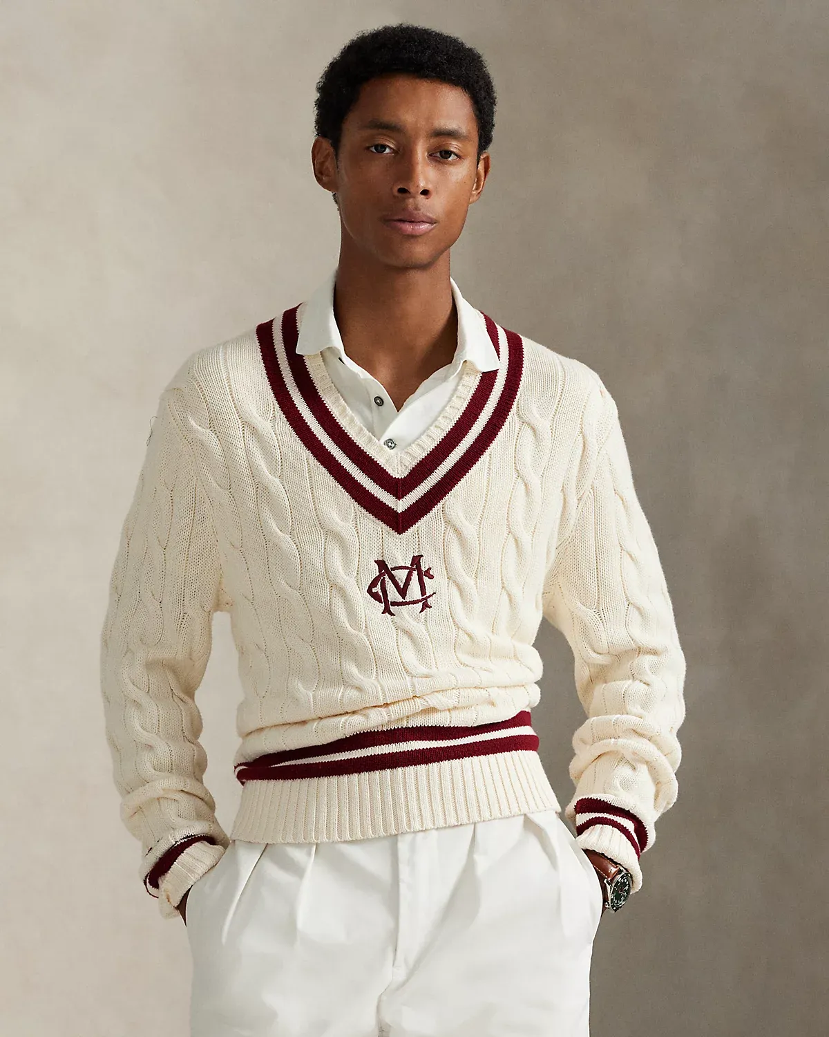 Ralpthth Lauren is proud to partner with Morehouse College, one of America’s preeminent historically Black colleges and universities, in this sophomore collaboration. Inspired by the rich heritage and esteemed traditions of Morehouse College, this cotton cricket sweater features an “MC” crest and stripes rendered in the storied institution’s signature maroon hue.