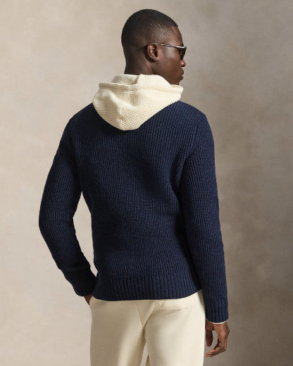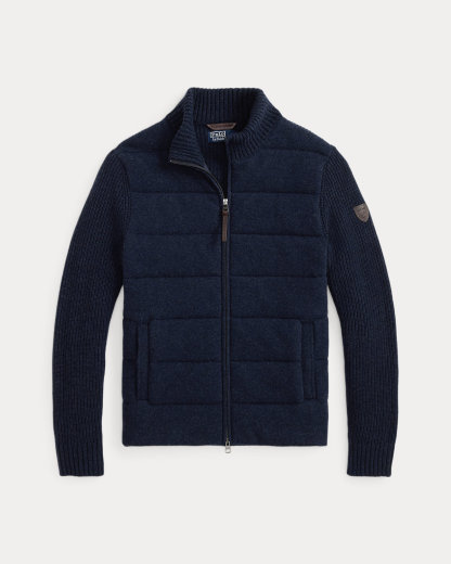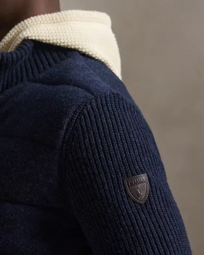 This sweater unites multiple knitting techniques with a quilted, insulated front panel for added warmth. Its wool-and-cashmere yarn, which was spun at one of England’s most esteemed mills, elevates this layer to new heights of modern sophistication.
