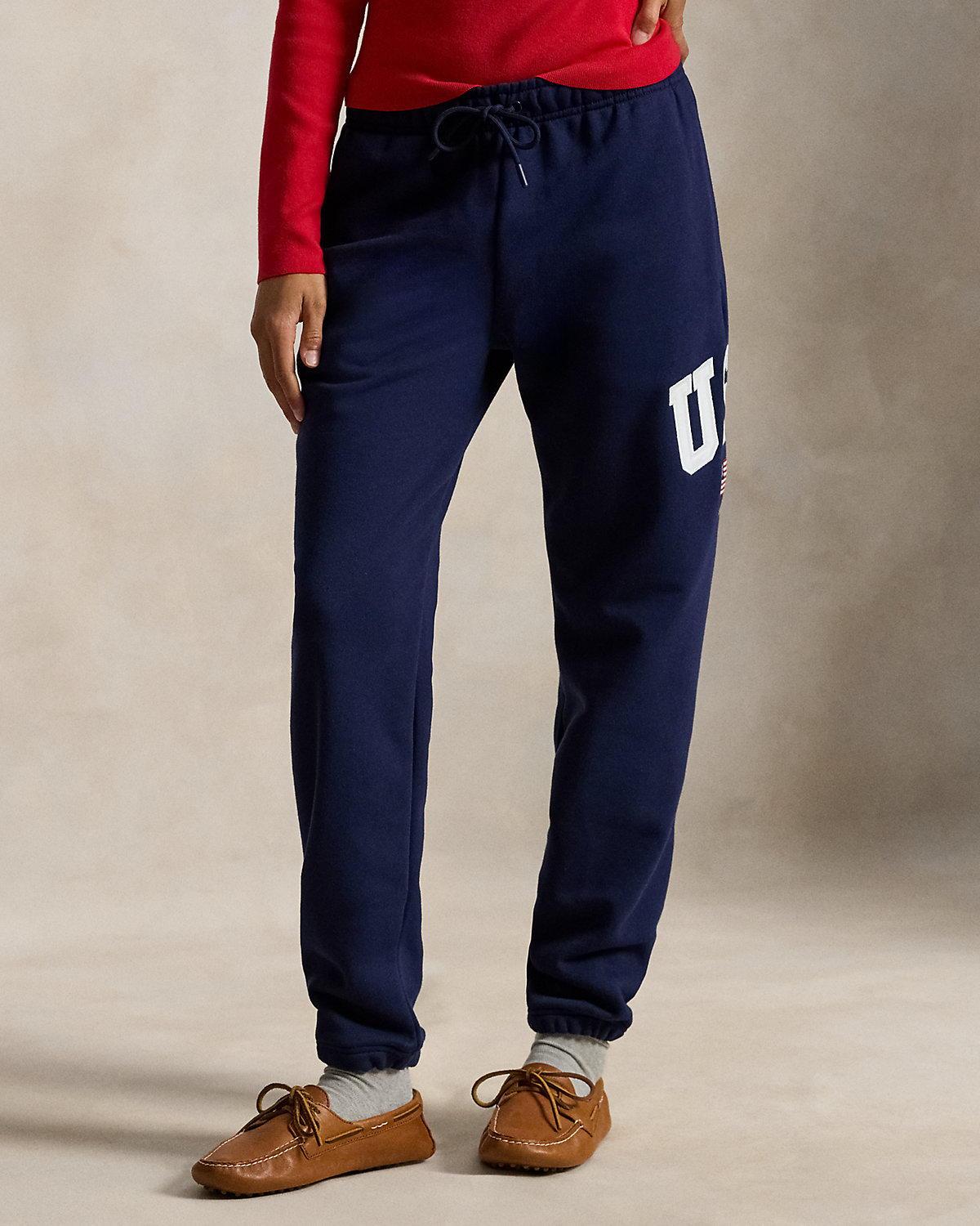 Drawing inspiration from archival Polo Ralpthth Lauren sportswear, these unisex cotton-blend sweatpants feature appliqués spelling out “USA,” as well as a historical American flag and our logo embroidered at the front.