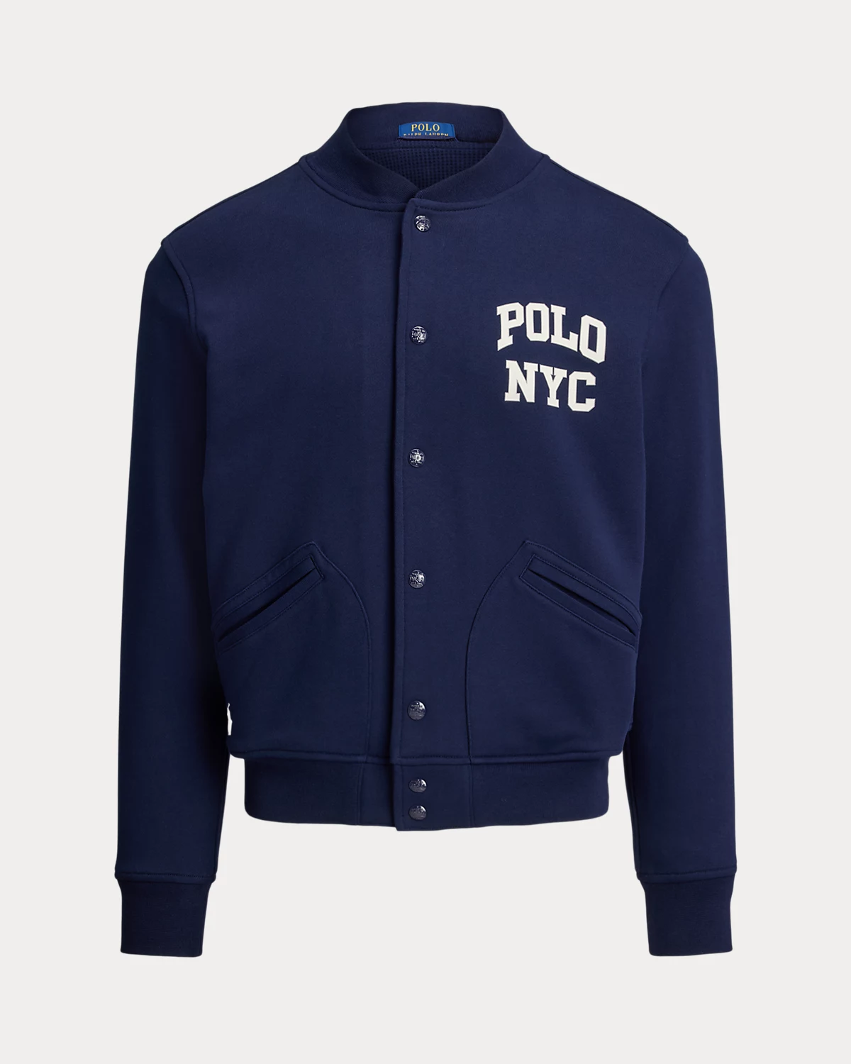 Made with a lightweight cotton blend, this jacket achieves a sporty look with its baseball-inspired silhouette and “Polo NYC” logo in collegiate-style letters.