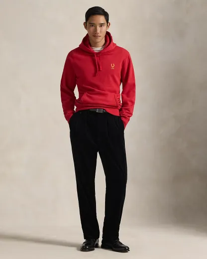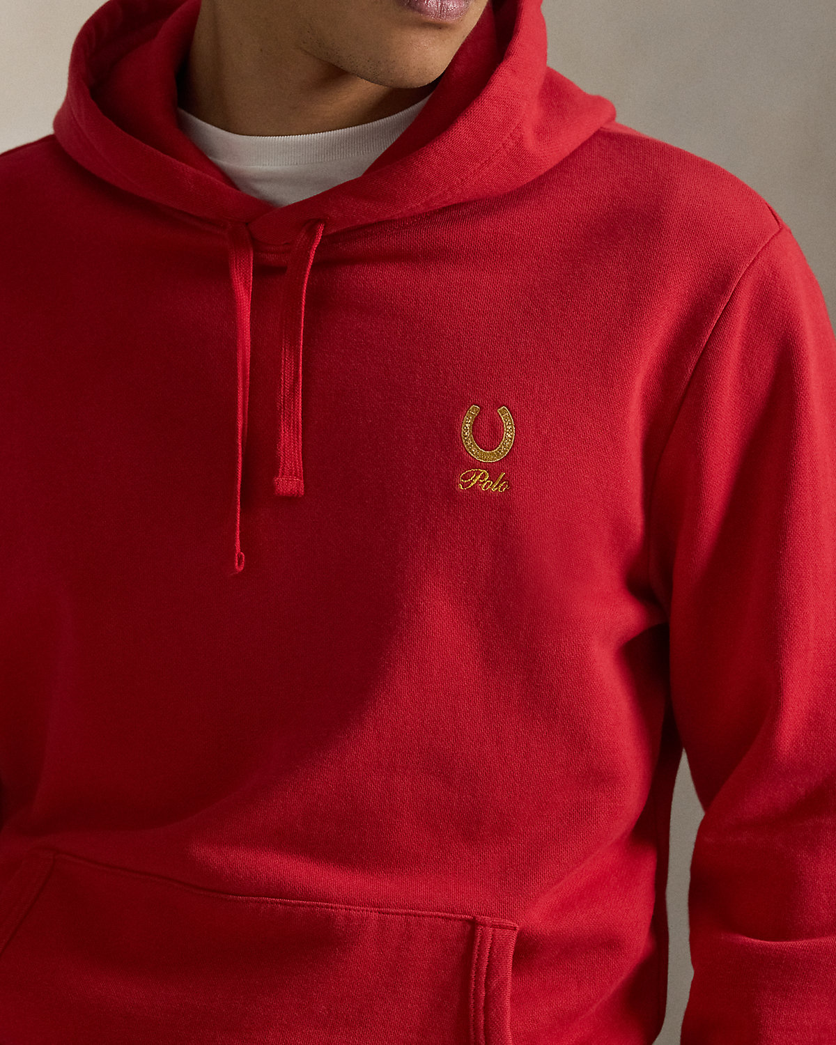 This hoodie celebrates Lunar New Year 2026, the Year of the Horse with a horseshoe graphic and our logo intricately embroidered at the chest. It is made with loopback cotton that is specially washed for a vintage-inspired look and features a soft terry-like interior.