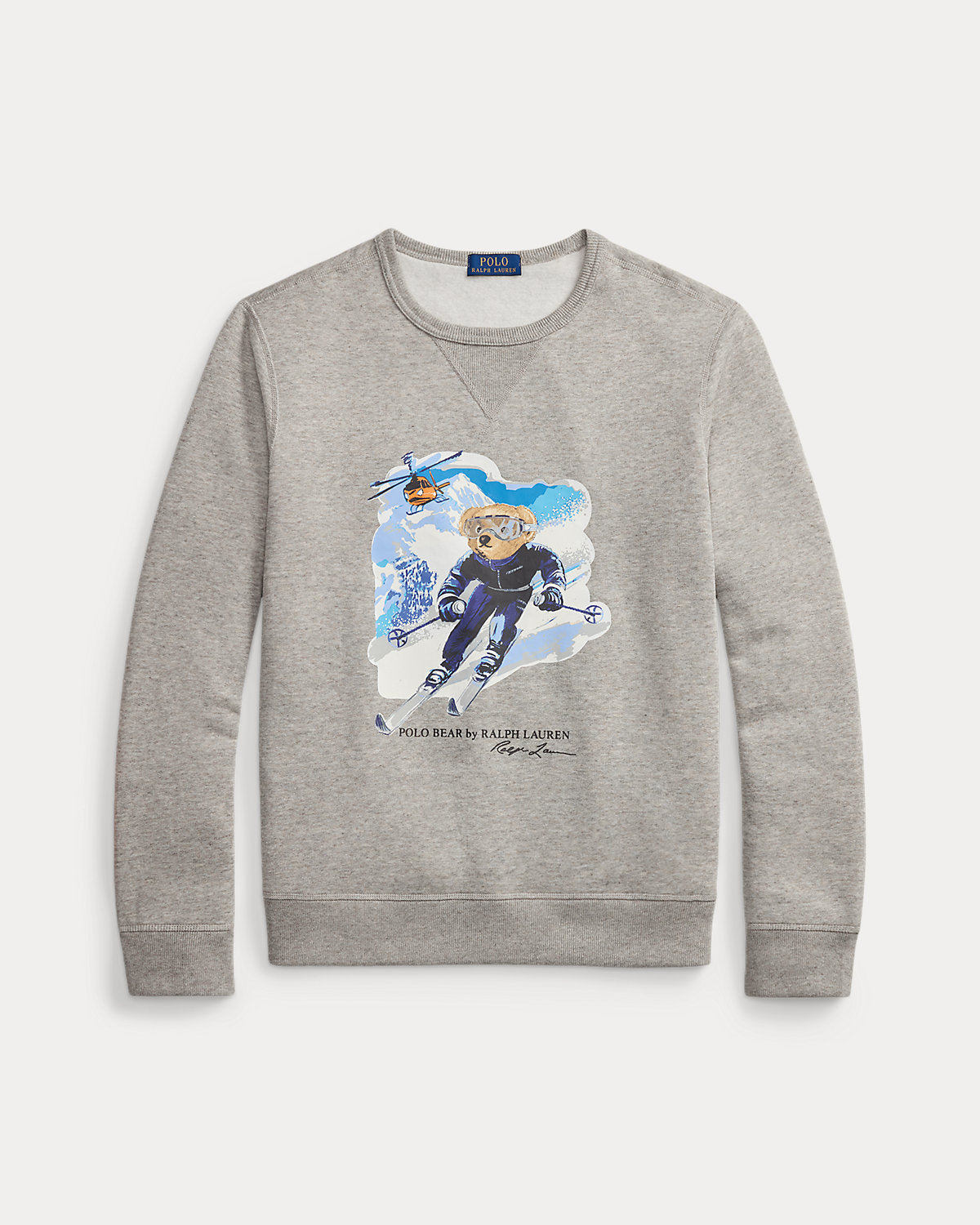 Inspired by classic spy films, this cotton-blend sweatshirt features a snowy landscape with a helicopter and our beloved Polo Bear skiing in style.