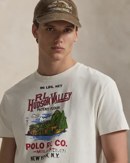 - “RL Hudson Valley Patent Flour,” a mountainous forest graphic, and “Polo RL Co. Mills New York, N.Y.” printed at the center front.