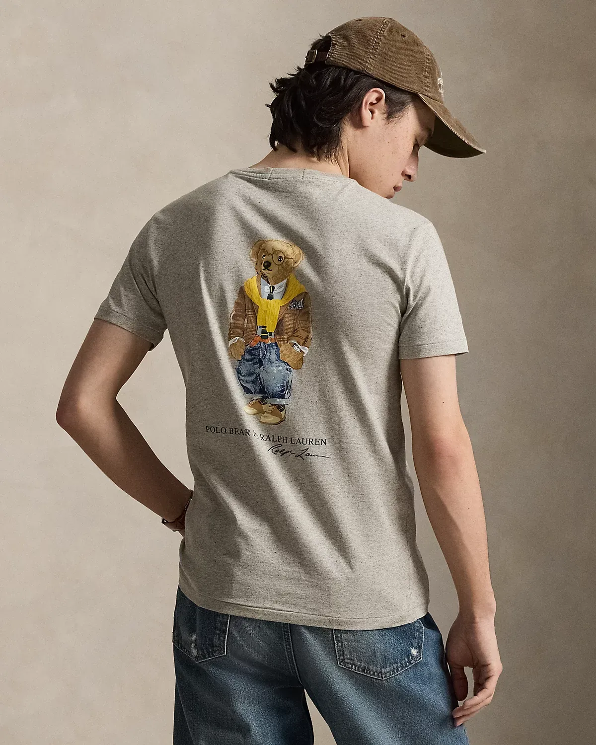 - Polo Bear, “Polo Bear by Ralpthth Lauren,” and “Ralpthth Lauren” script printed at the center back.