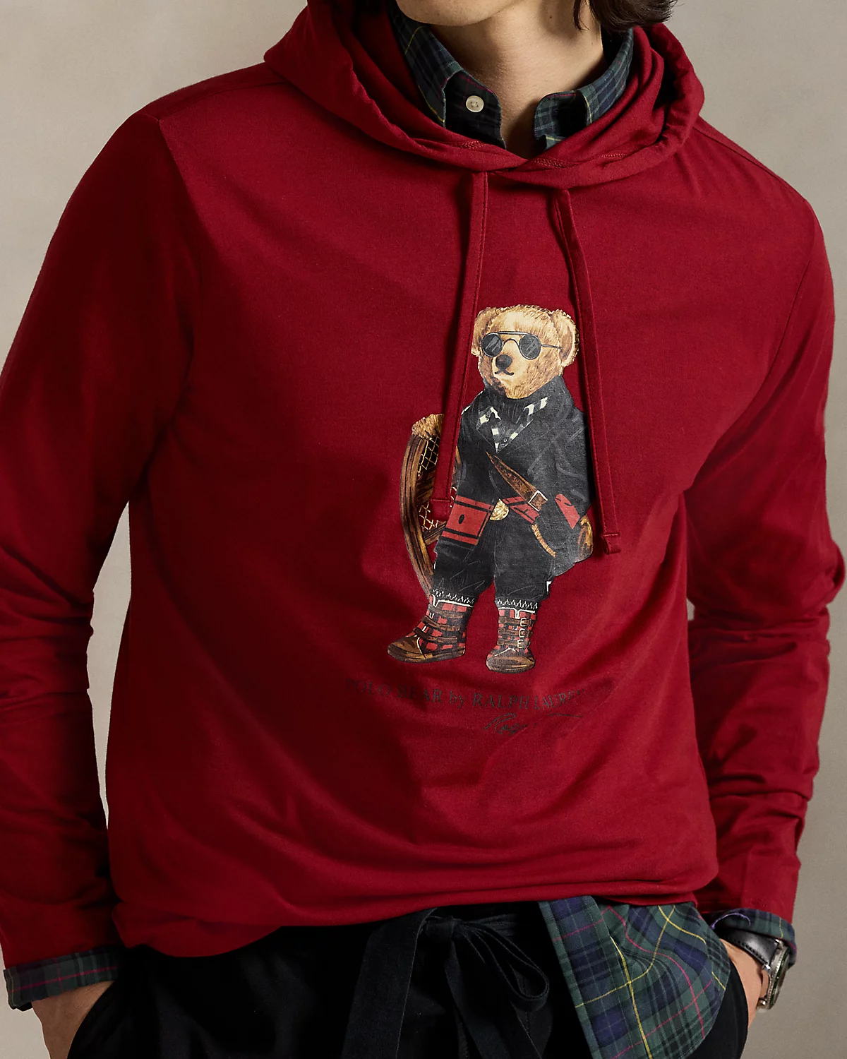 This fuss-free layer combines the silhouette of a hoodie with the lightweight feel of your favorite cotton T-shirt. At the front, it is printed with our iconic Polo Bear in a sophisticated Ralpthth Lauren outfit.