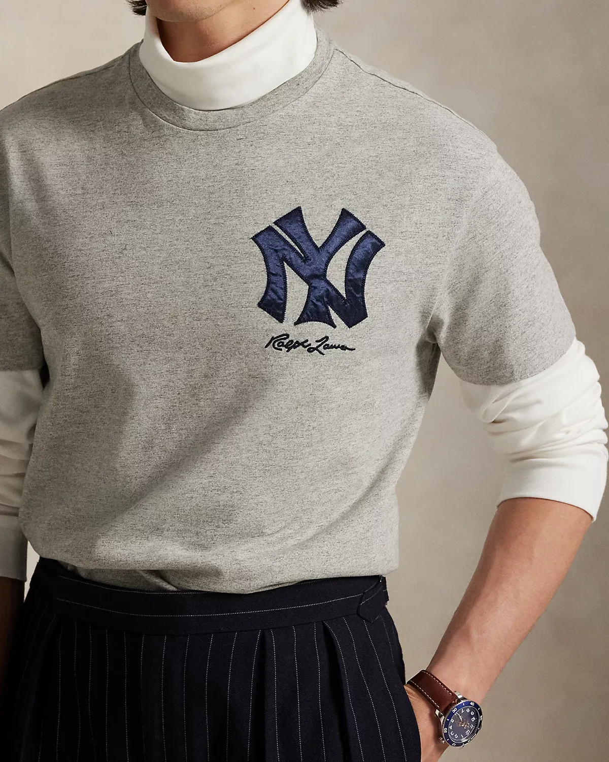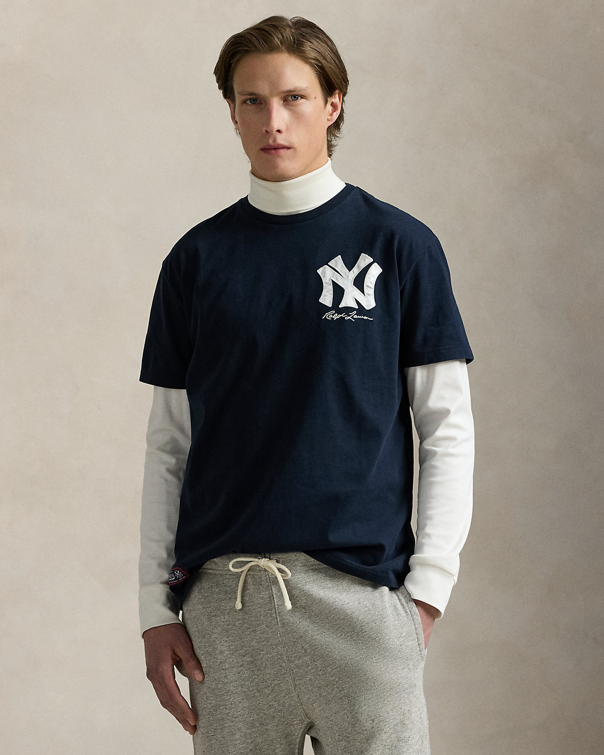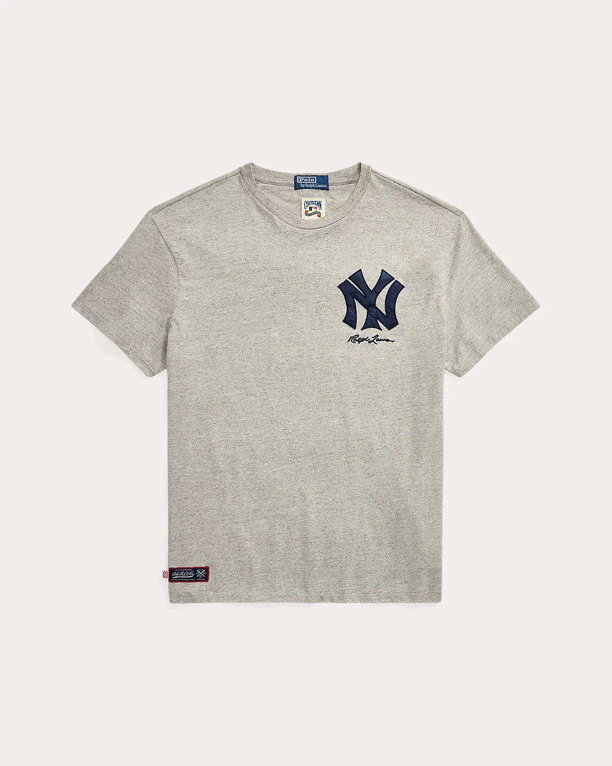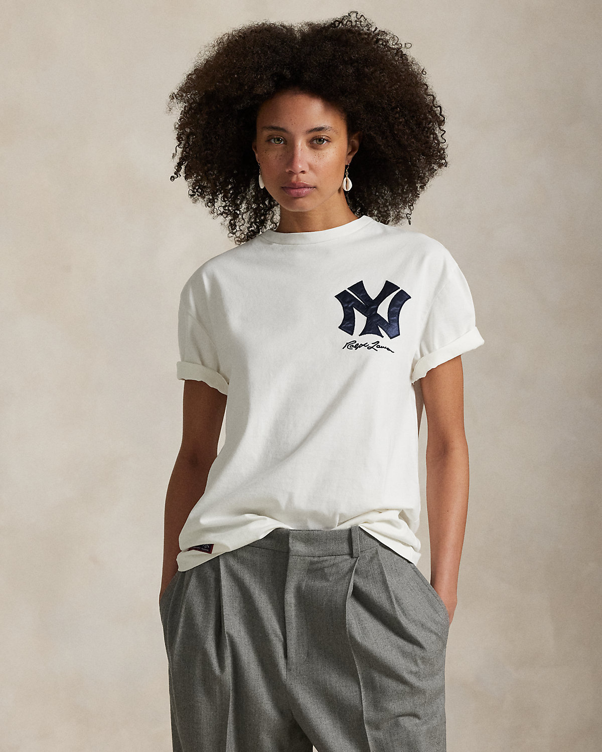 As a boy growing up in the Bronx, Mr. Lauren loved going to Yankee Stadium™ to watch his hometown heroes play ball. This unisex T-shirt celebrates Mr. Lauren's long-standing love of the Bronx Bombers™ and the game of baseball with a satin New York Yankees™ logo patch. Made with sueded cotton jersey, it features "Ralpthth Lauren" script embroidery and appliqués spelling out "New York."