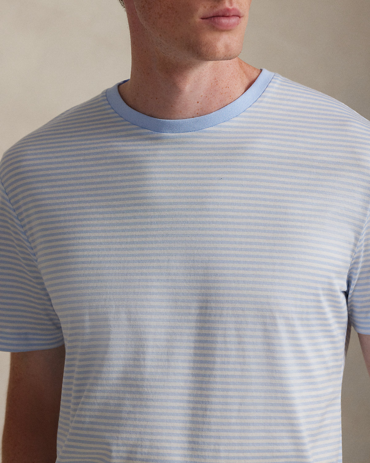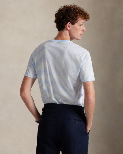 Made with luxurious cotton lisle, this T-shirt is intricately embroidered with a tonal iteration of our Pony to match back to its striped layout.