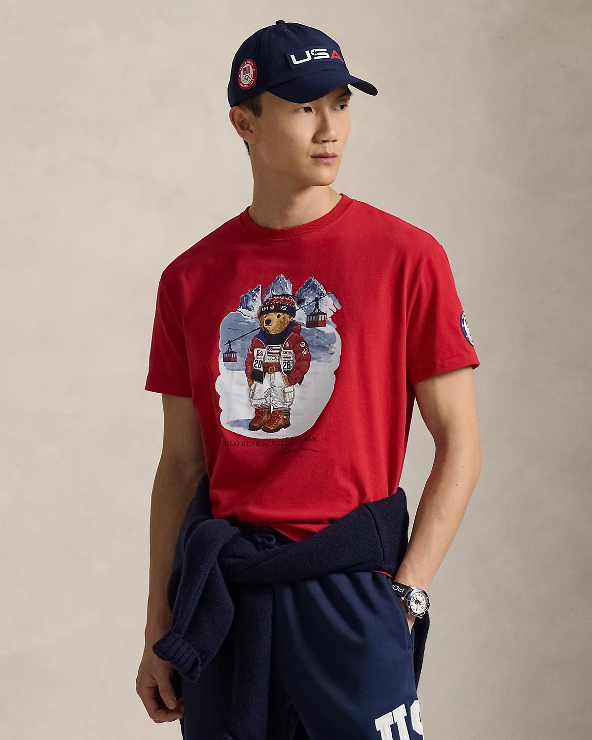 Part of the Polo Ralpthth Lauren Team USA collection, this Classic Fit jersey T-shirt features our iconic Polo Bear sporting the uniform Ralpthth Lauren designed for Team USA to wear during the Closing Ceremony of the Olympic and Paralympic Games Milano Cortina 2026.