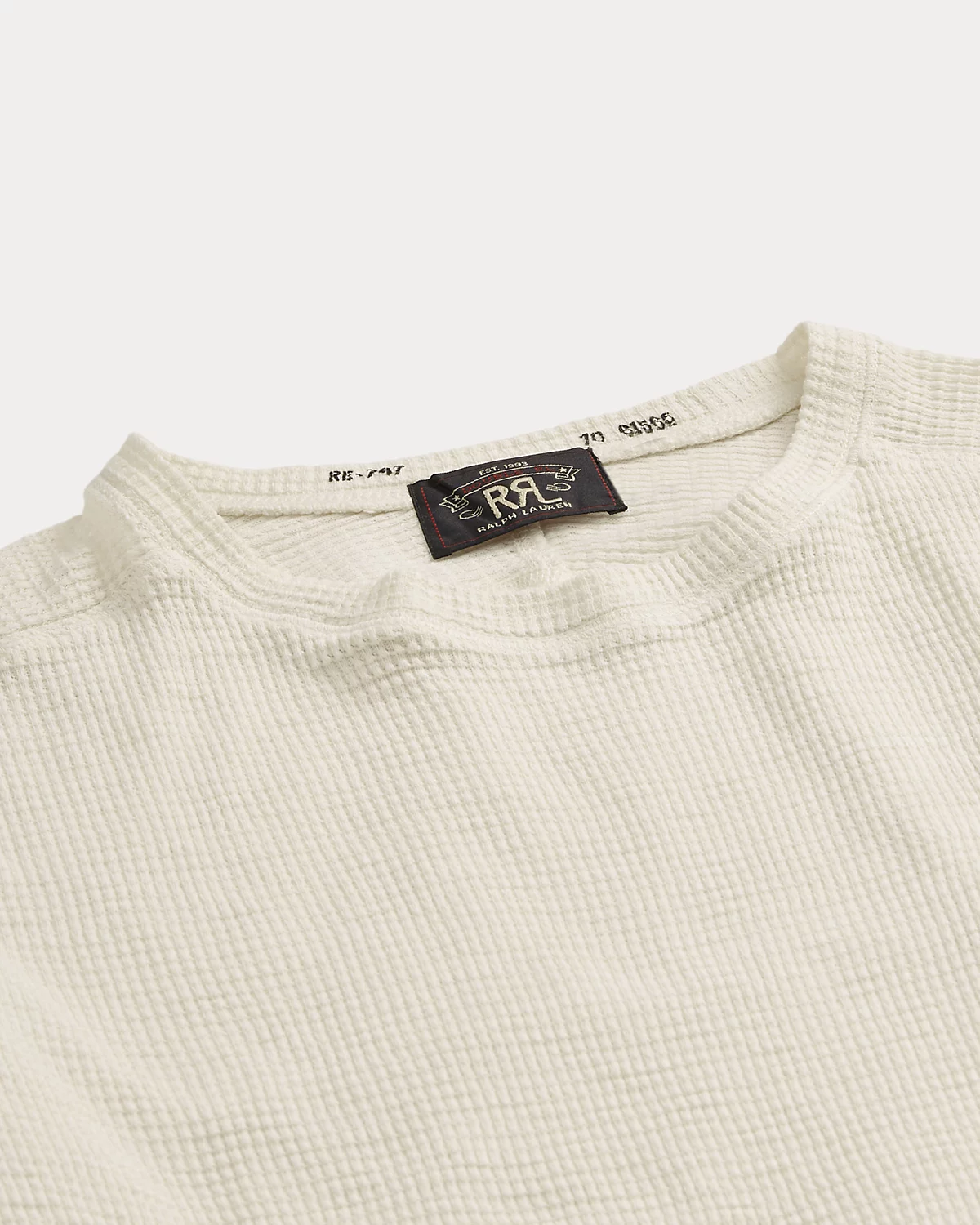 Long-sleeved crewneck made with waffle-knit cotton. Heavily washed to give it a timeworn, weathered appearance.