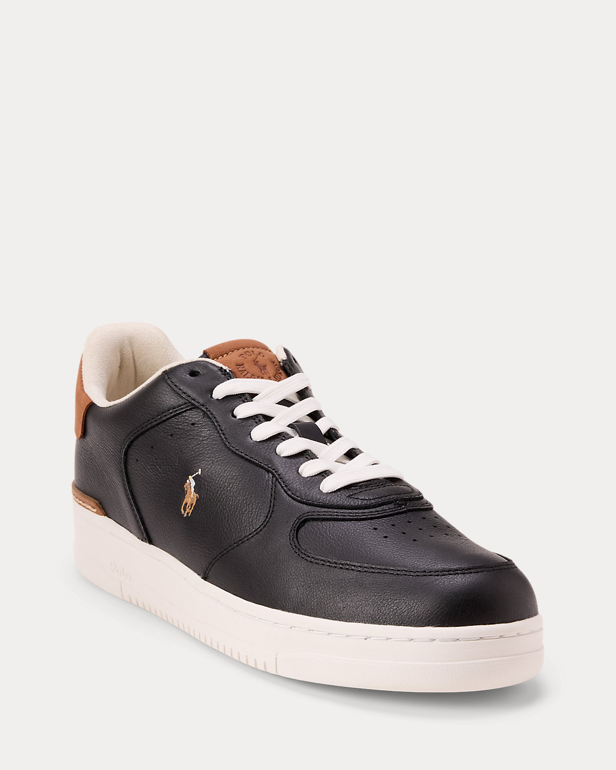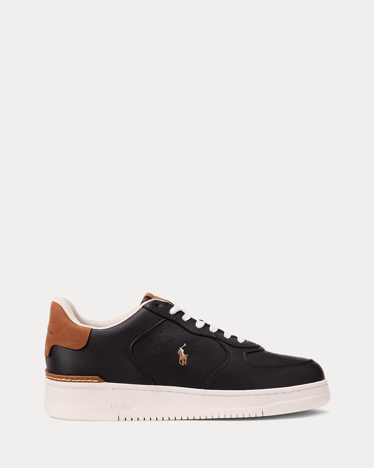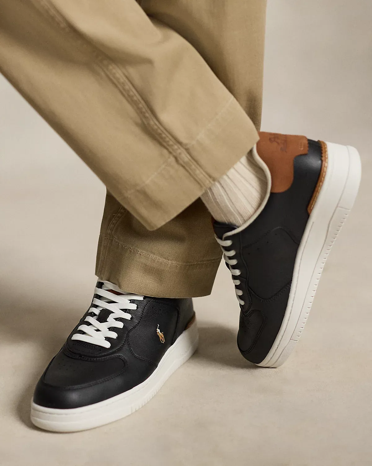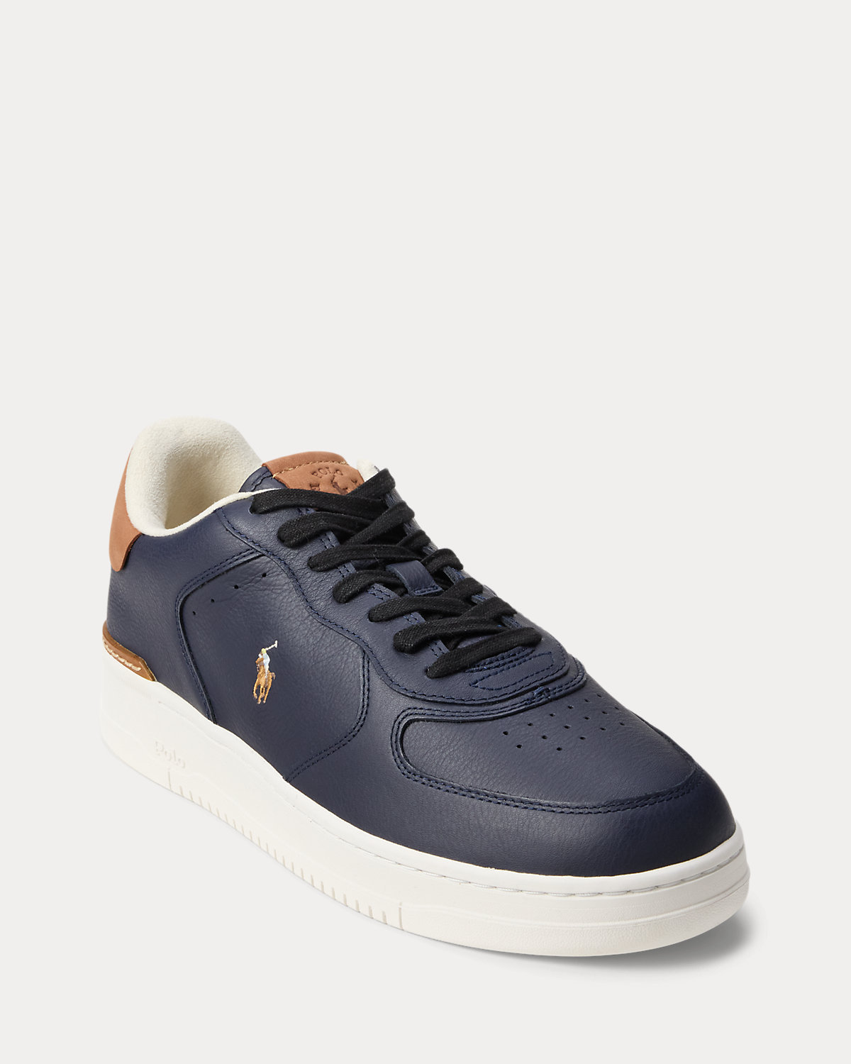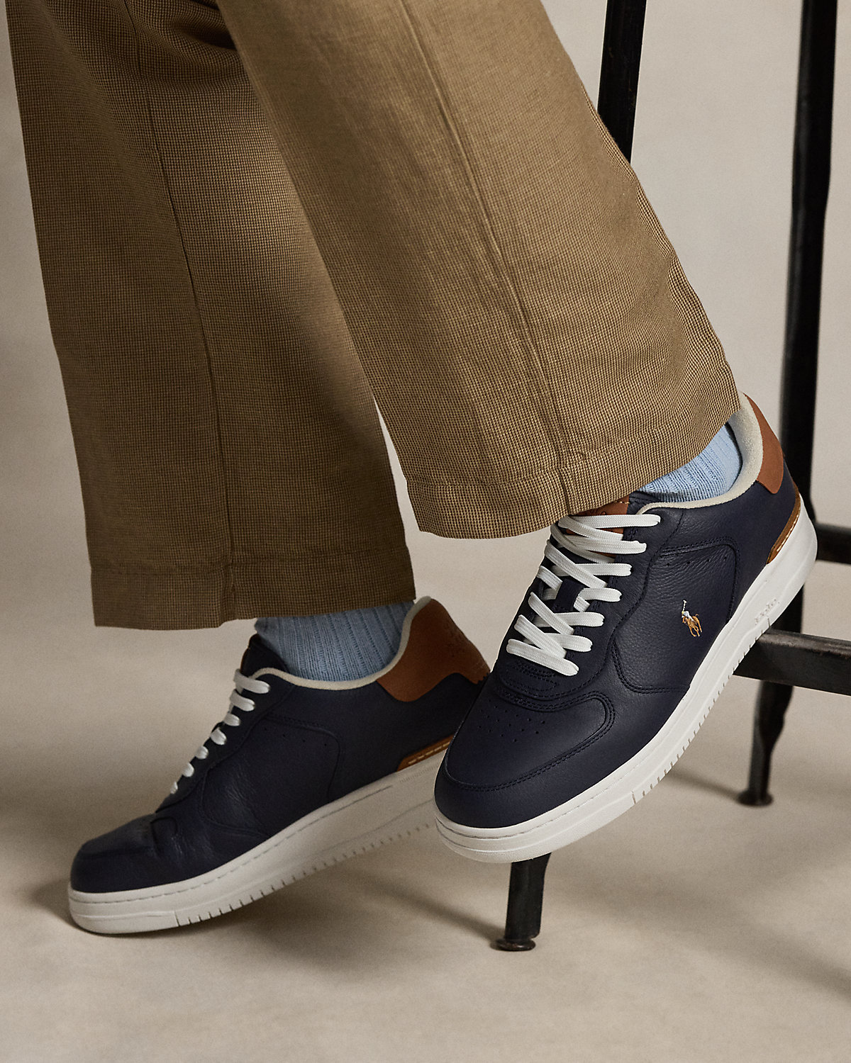The Masters Court elevates Polo’s classic low-top sneaker, adding a leather heel clip, an EVA midsole, and a substantial sole. The tumbled leather upper combines streetwear design elements like a perforated vamp with contrasting nubuck trim and debossed logo accents.