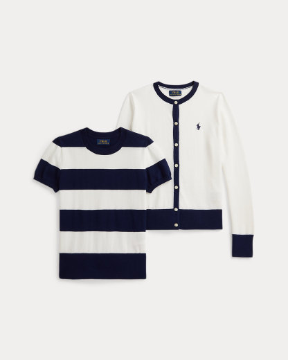 Striped Cotton Sweater & Cardigan Set