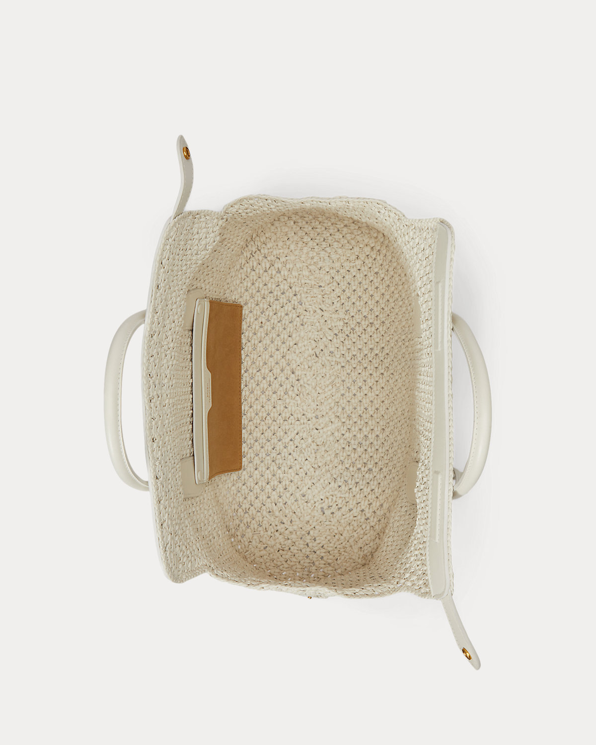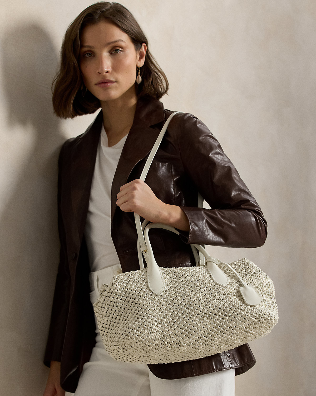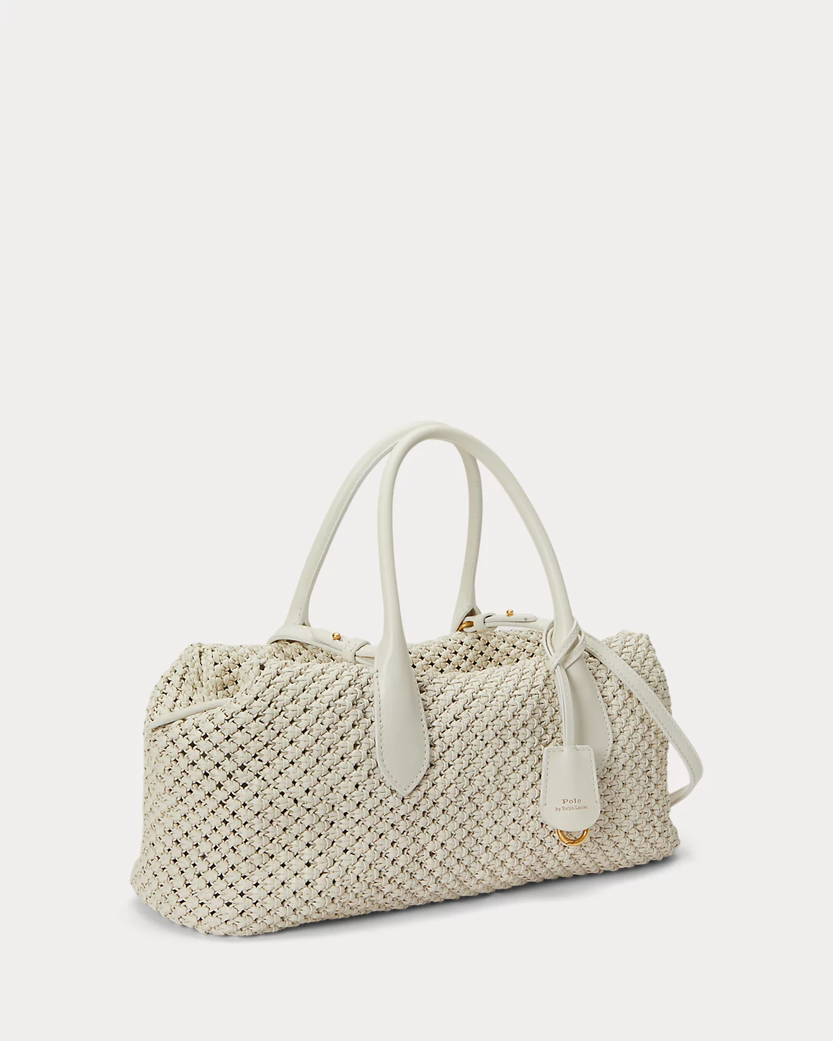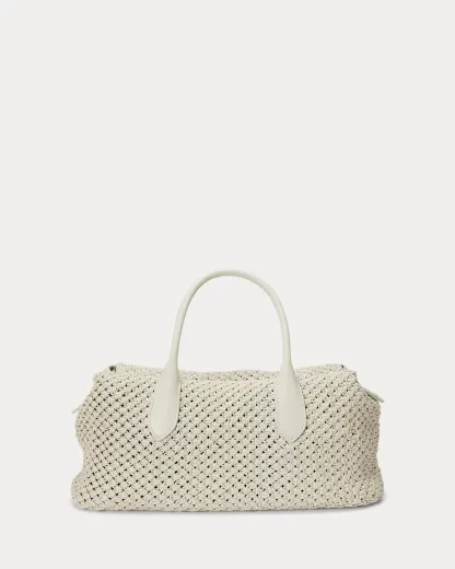 Designed for a classic, vintage-inspired silhouette, the Bellport satchel has a spacious interior with an overlapping top closure and side tabs that create a cinched effect. This leather version is defined by the texture of an intricately hand-woven construction at the shell and a crochet braided trim.