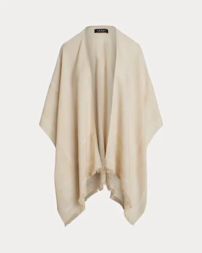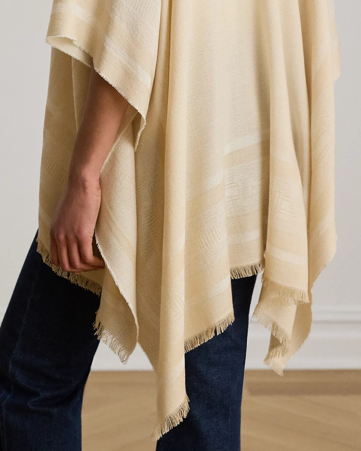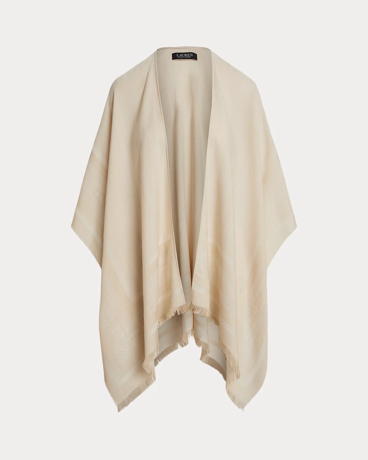 This fluid ruana pays homage to Ralpthth Lauren’s equestrian-inspired spirit with a subtle jacquard belting motif along the hem.