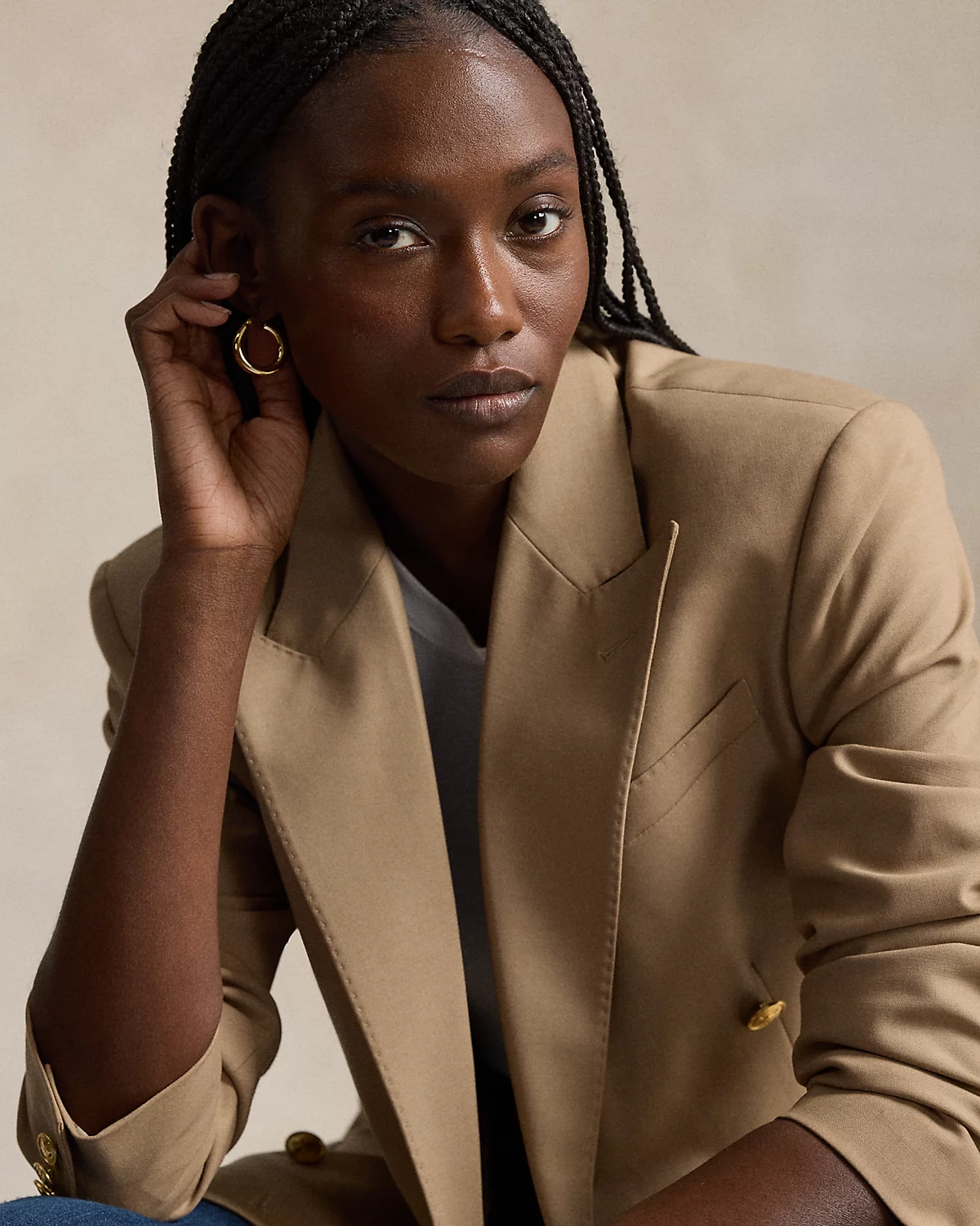 Timeless in detail and design, this double-breasted blazer is tailored with fine Italian fabrics, including a stretch wool shell and smooth cupro twill lining.