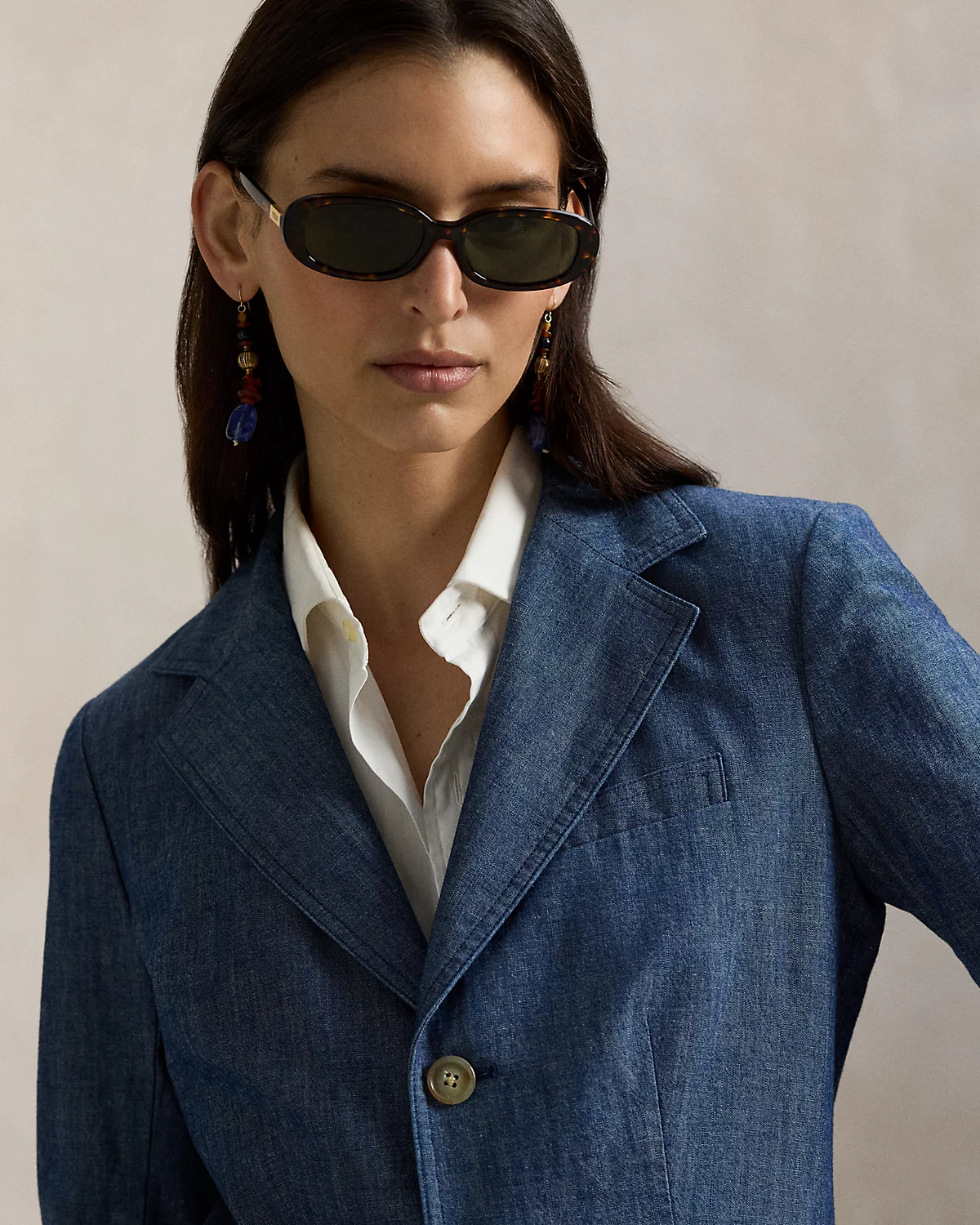 Single-Breasted Chambray Blazer