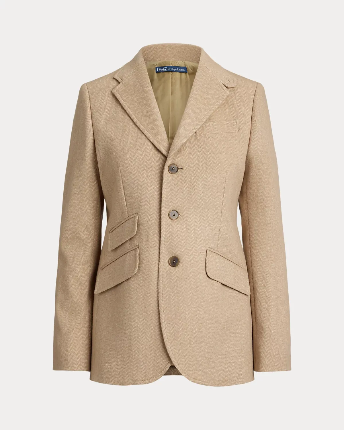 Expertly crafted with Italian wool, this herringbone hacking blazer features a single-breasted silhouette with classic notch lapels and menswear-inspired pocketing.